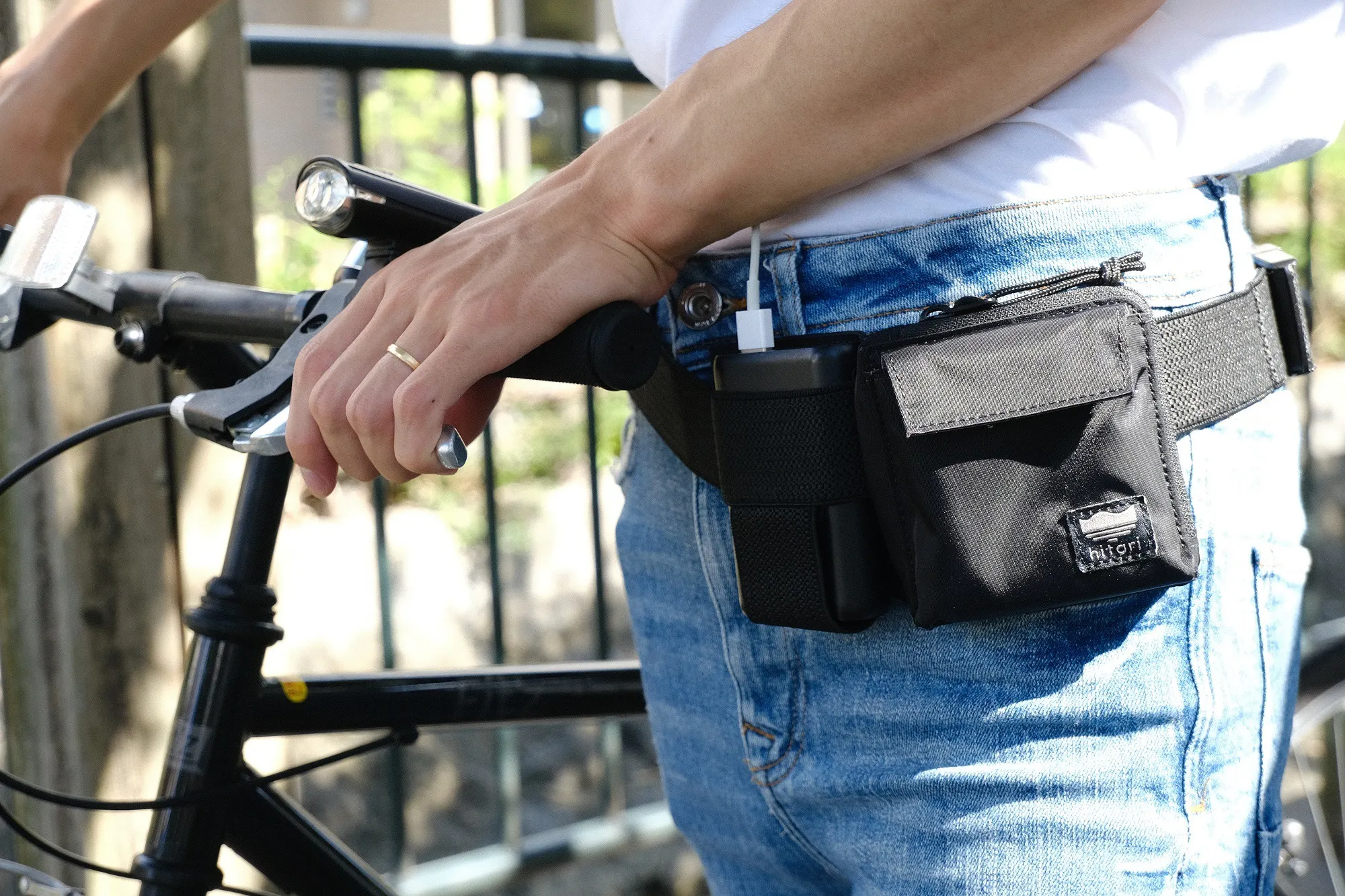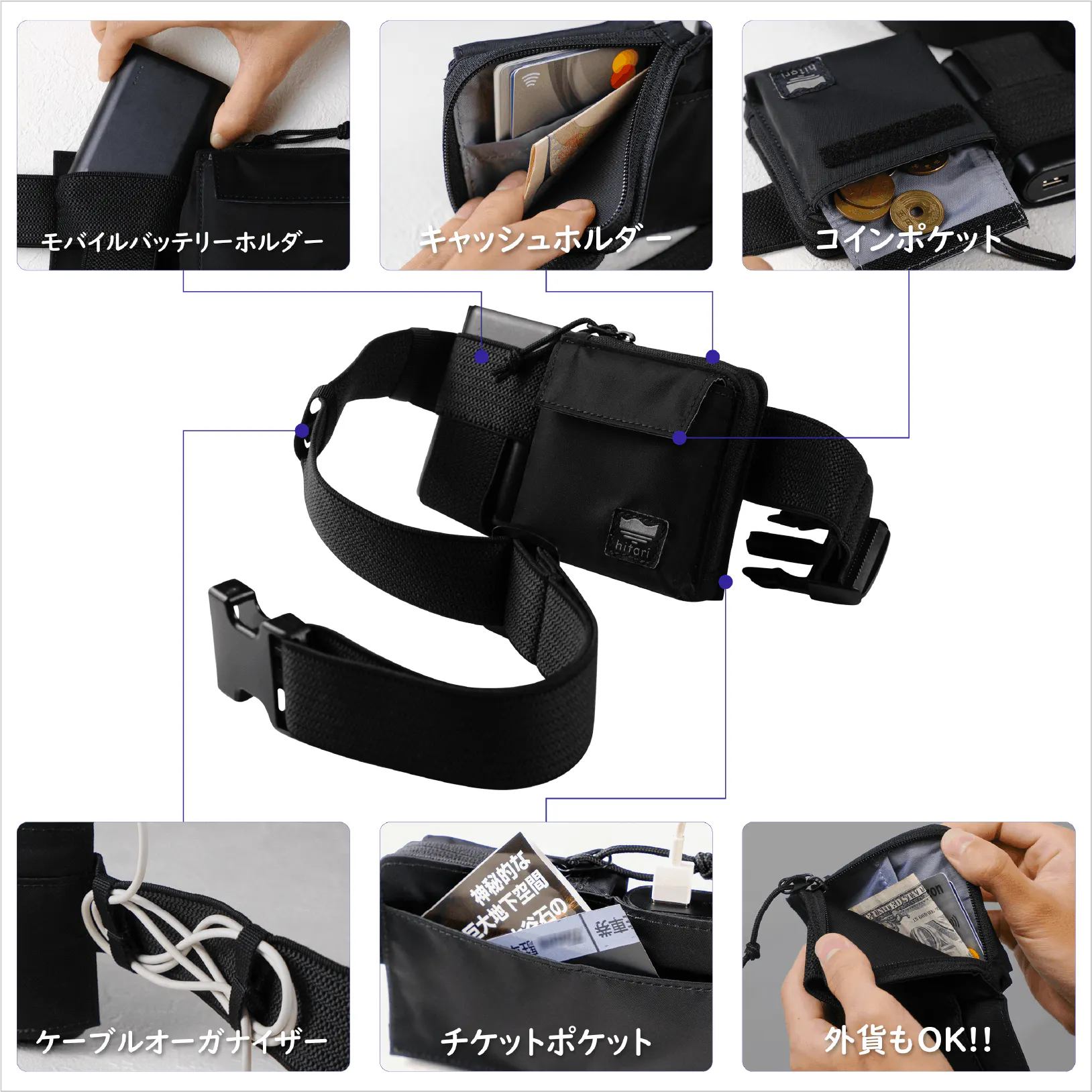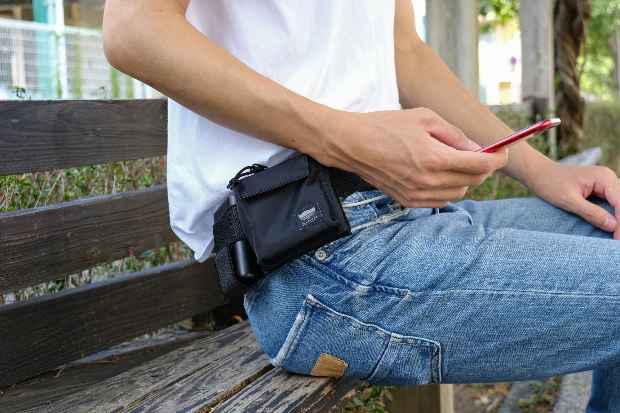 そこでこの商品企画では、走っても負担の少ない形としてランニングポーチにヒントを得て、ウェストポーチ型を採用。