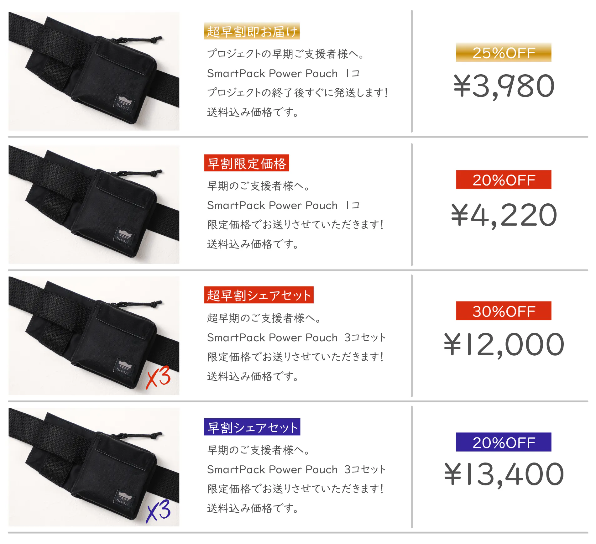 2025/02/27 20:55皆さま、こんばんは!気付けばこのプロジェクトも残り あと2日 ですね。新たなご支援もたくさんいただき、本当に感謝感謝です!!!「このまま1000%達成へ~~~!」 なんて願いを込めつつ、今回は 2ndサンプルから最終調整品までの話 をシェアしますね!2ndサンプルは毎日使いたくなるほど快適!祇園祭りでも大活躍でした!!1stサンプルの改良から 約1ヶ月後、先日の指示修正を加えた 2ndサンプル が届きました。修正点は多かったですが、果たしてすべて反映されているのか…!?結果は…… ほ ぼ O K !一部の修正が反映されていない部分 がありました。が!大きな問題ではなくて、むしろ使い心地は理想に近い仕上がり!生地は柔らかくなり、カードがスムーズに出し入れできるように製品のシルエットもシャープになり、より洗練されたデザインに残っていた反映漏れは、裏地の色変更や、細かい縫製方法の修正など。↓とはいえ、致命的な問題ではなかったので、この 2ndサンプルを2週間毎日使用して実際の使い心地を検証 しました。オーストラリアで海外利用も検証してきました!実際の使用テストでチェックしたポイント■ サイズは十分か?■ 左右どちらでも使いやすいか?■ コインはスムーズに取り出せるか?■ バッテリーホルダーの他の用途はあるか?■ 生地やゴムの耐久性は十分か?などなど、、、たくさんの事をチェックしました。そしてこのテストを通じて、最終サンプルへ向けて ある機能を追加することに。それが、この「オーガナイザー」機能 です。「左右どちらでも使いやすいか?」の検証で見えた課題実際に試用してみると、想像していなかった問題が色々見つかります。私は普段右ポケットにスマホを入れるので、バッテリーとの距離が近くなり、コードも邪魔になりませんでした。でも、左ポケットにスマホを入れる場合は…?バッテリーホルダーはポーチの右側についています。もしポーチを腰の右側に回して使うと、ポーチとポケットの距離が遠くなりコードが垂れてしまいました。この問題を解決するためにオーガナイザーの追加が決定!実際の使用テストを通じてさらに使いやすく、より現実的なアップデートを重ねていきました。そして、最終サンプルが完成!裏地の色もしっかり反映され、仕上がりも完璧!自慢の逸品が出来ました!!さて、今日はここまで。支援してくださった皆さま、何度でも言います… 本当にありがとうございます!今後のアップデートは配送が完了するまで継続して情報をお届けします。すぐに配送に移れるよう準備しておりますので、続報を楽しみにお待ちください! ではでは良いプレミアムフライデーを~! もっと見るⅡ. 1stサンプルはとても使いづらいものでした