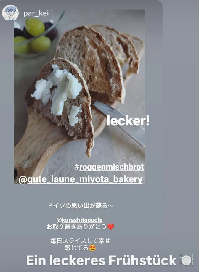 4月に移住してからは、さまざまな方に私のパンを食べていただき、その高評価を受けてインスタグラムを始めました。徐々に広がり、気づけば何百人もの方々がグーテ・ラウネに興味を持ち、フォローしていただいています。「グーテ・ラウネのドイツパンはどこで買えますか?」という質問も増え、その要望に応える形で、店舗を持たないグーテ・ラウネが出店を始めました。出店先ではお陰様で、30分で完売することができました。私にとってのパン作りは、何より幸せな時間です。その幸せな時間に焼いたパンを皆様に食べていただき、幸せな気分になっていただくことが私にとってのまた幸せでもあります。皆様の暖かい言葉とサポートを受け、2025年の春にはパン屋をオープンするという夢が一歩近づきました。