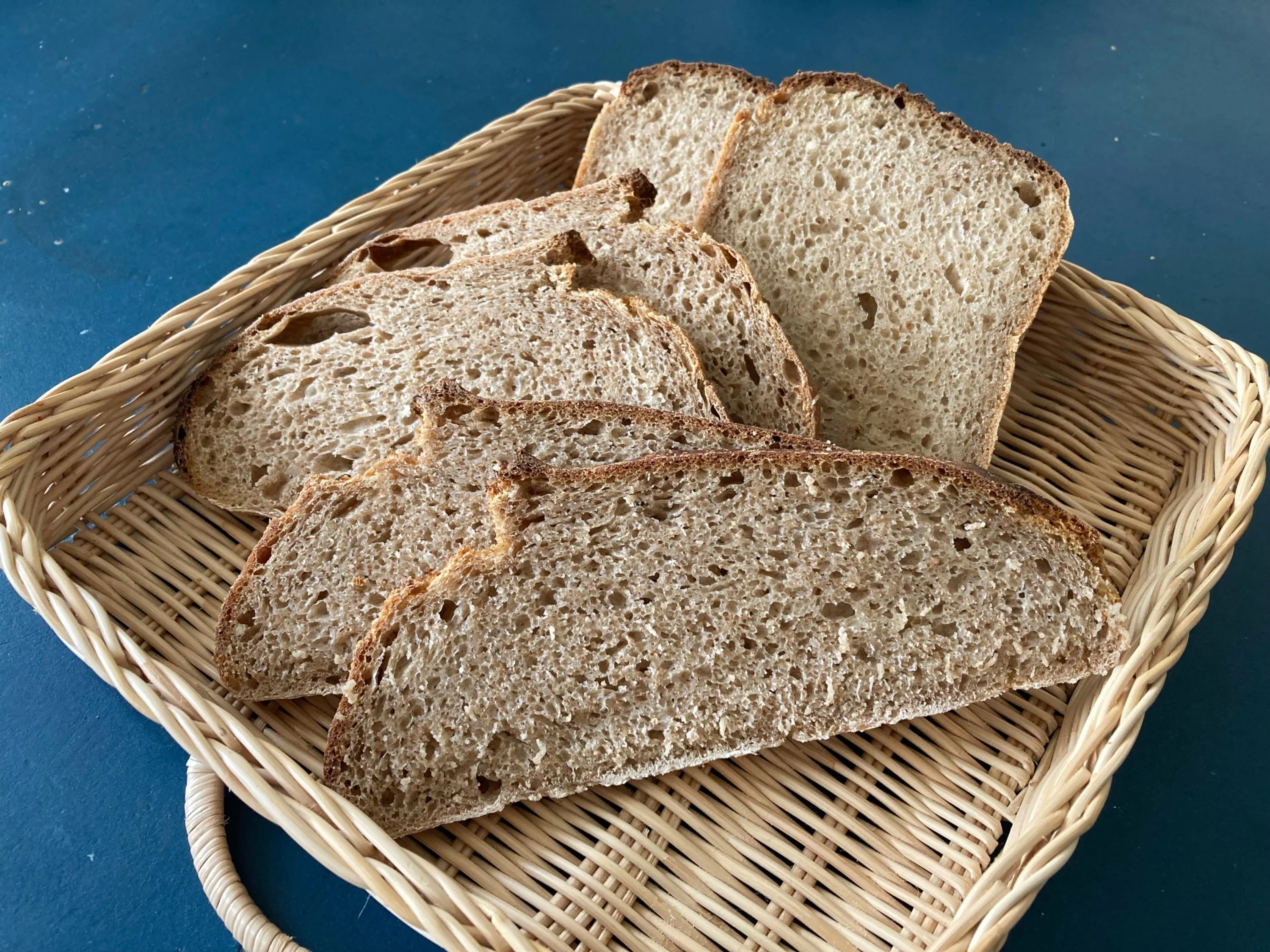 発酵されたパンは消化が良く、体への負担が少ないです。粉に含まれる栄養分もより吸収されやすくなります。味の面では、サワー種がパンに独特の風味を与え、しっとりとした食感を保つ役割も果たします。また、サワー種のパンはカビが入りにくく、常温で約1週間持ちます(それ以上は乾燥して固くなりますが、カビることは殆んどありません)。