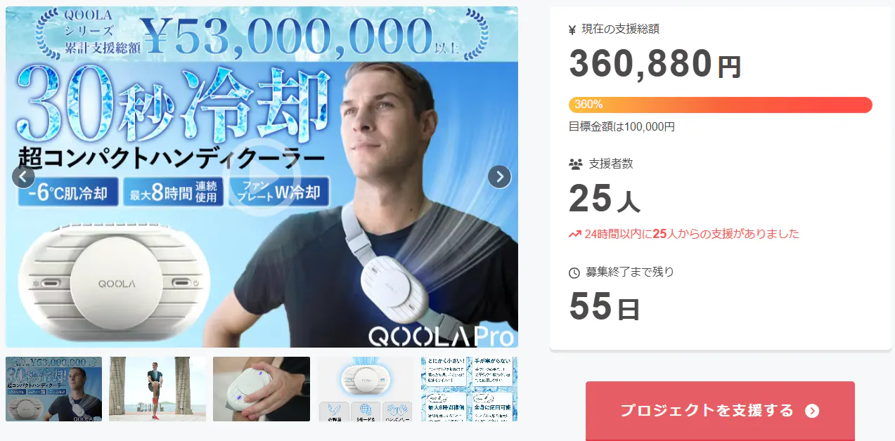 この度は「冷却×冷風で瞬間冷却! 涼しさが8時間続くハンズフリークーラーQOOLA Pro」に支援頂き誠にありがとうございます!