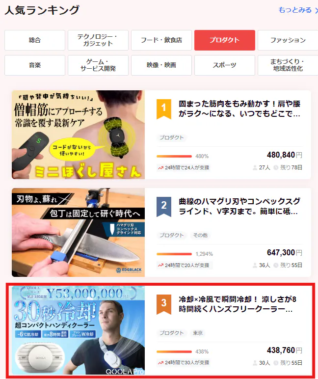 また本日のCampfire人気ランキングプロダクト部門 で 3位!