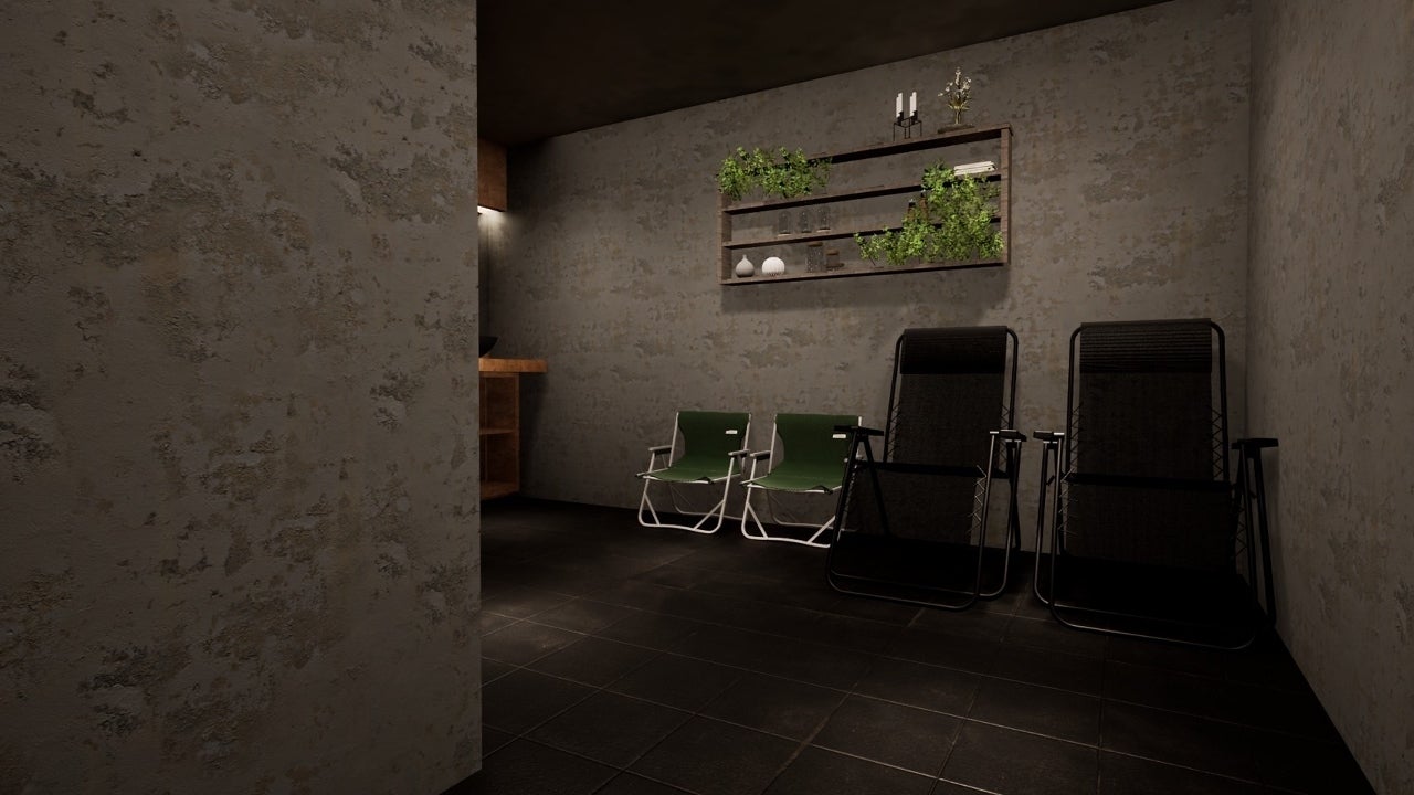 照明を落とし、BGMを聴きながら木材が心地よいととのいスペースで、Colemanインフィニティチェアで寛げます。