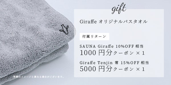 すべてのリターンに【SAUNA Giraffe 1,000円分クーポン】【Giraffe Tenjin 常 5,000円分クーポン】が付属します!