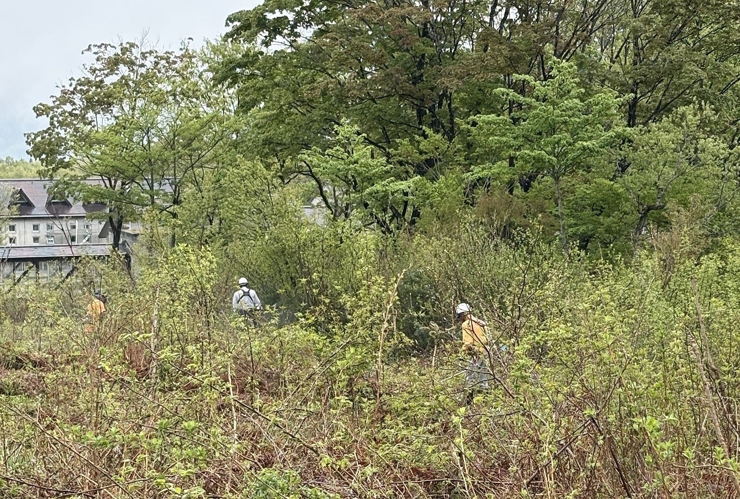 みなさん、こんにちは!国立妙高青少年自然の家です。 5月12日、新活動広場「ピエニメッツァ」の整備作業が始まりました。まずは、下草刈りです。小雨が降る中、業者さん3名の刈り払い機のエンジン音がばりばりと響いていました。 さすがプロですね!刈り払い機を使い、草や小低木をリズムよく刈り進めていました。1日かけて、しっかり地面が見えてきました。(下画像) 広場中の大きな樹木はそのまま残されます。樹木は、木陰を作るだけでなく、木登りに挑戦したり、ロープを渡したりできそうです。 皆さんに応援していただいたプロジェクトにかけた「オモイ」が、だんだんと「カタチ」になっていくようで、大変うれしく思います。 今後は土を入れたり、削ったりして地面が整地されていきます。 引き続き整備の様子をレポートします!乞うご期待(^^)/