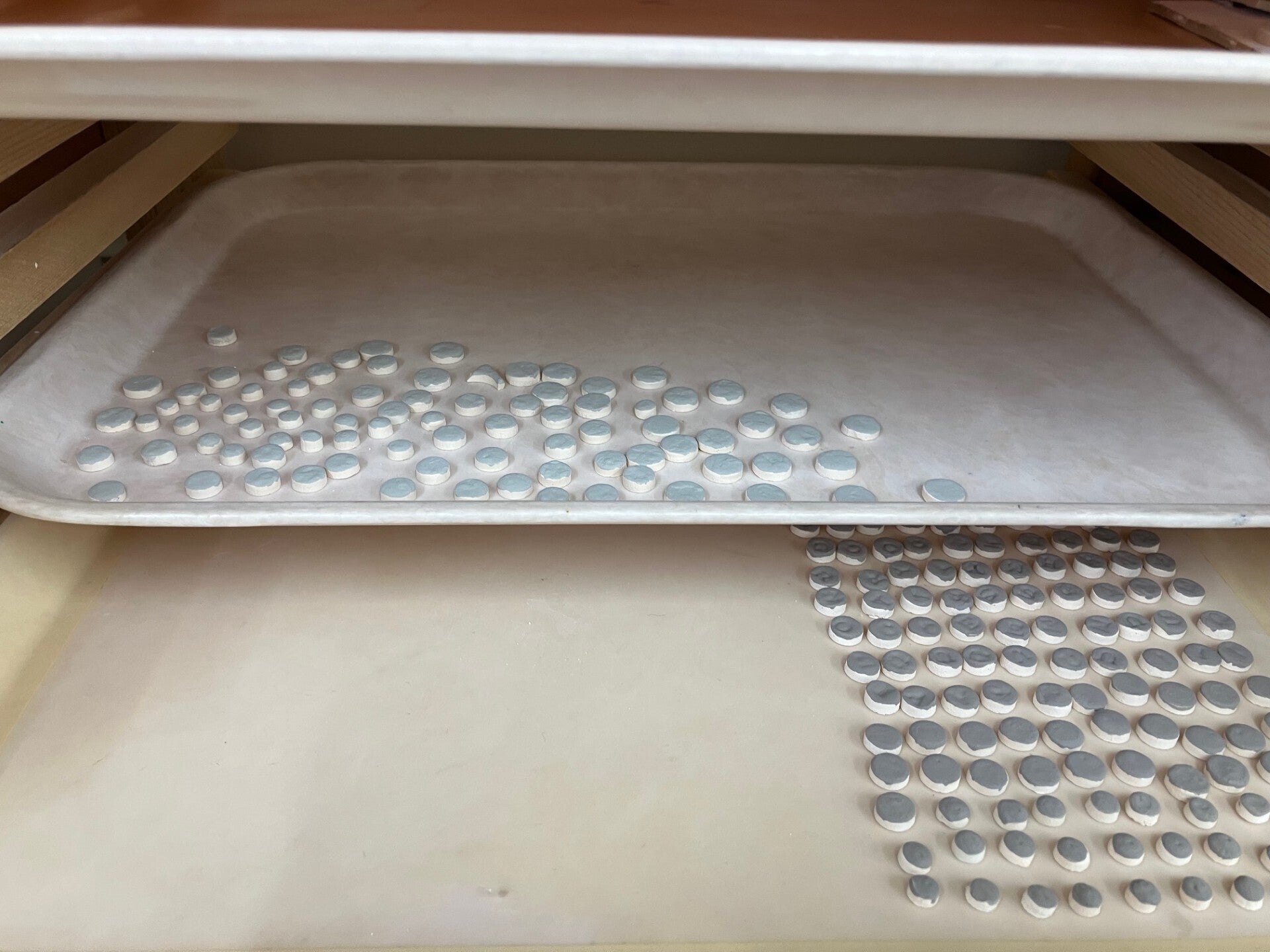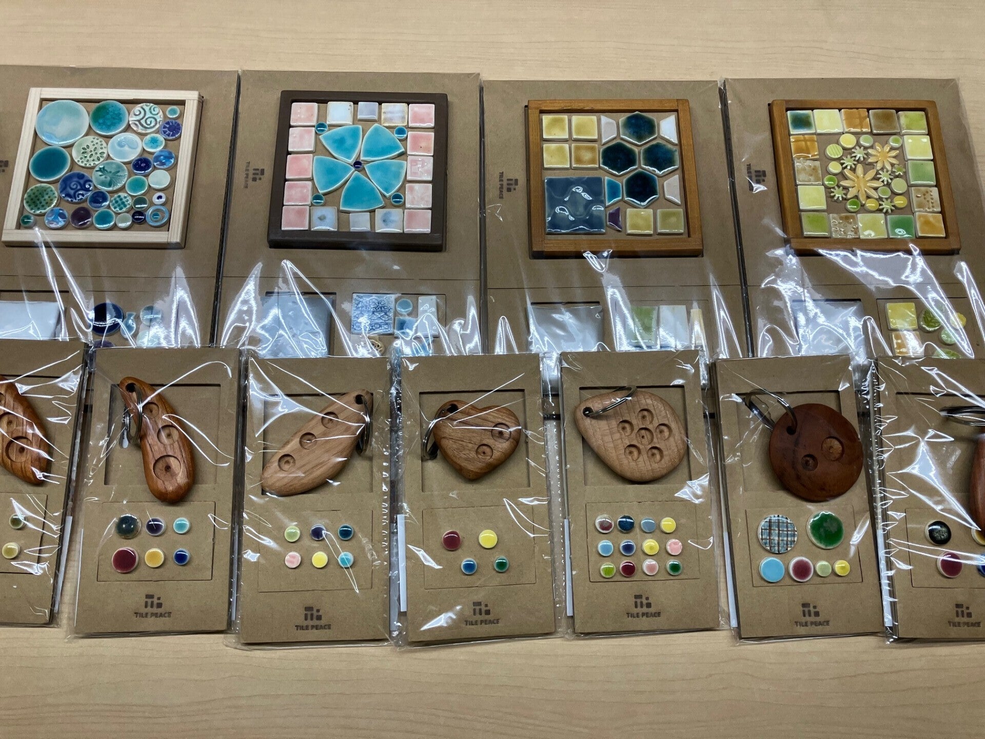 皆さんこんにちは! 今シーズンはとても雪が多かったですが、3月に入り春の日差しで少しずつ暖かくなってまいりました。三寒四温ですね! さて、先日、新潟県立高田特別支援学校の高等部にお邪魔して、クラフト体験キットの打ち合わせを行ってきました!上の画像は生徒さんが一つ一つ型抜きをして、釉薬をかけたところです。これから焼成すると色が綺麗に出てきます。 皆さんのお手元に届いたら、すぐに作れるようにキットにしてお届けします。キーホルダーの形やタイルの色目はお任せになりますが、世界で1つだけのオリジナルのキーホルダー、コースターを制作してください。 ボンドは同封しておりませんので、木工用ボンド等をご準備頂けましたら幸いです。 到着まで今しばらくお待ちください!!