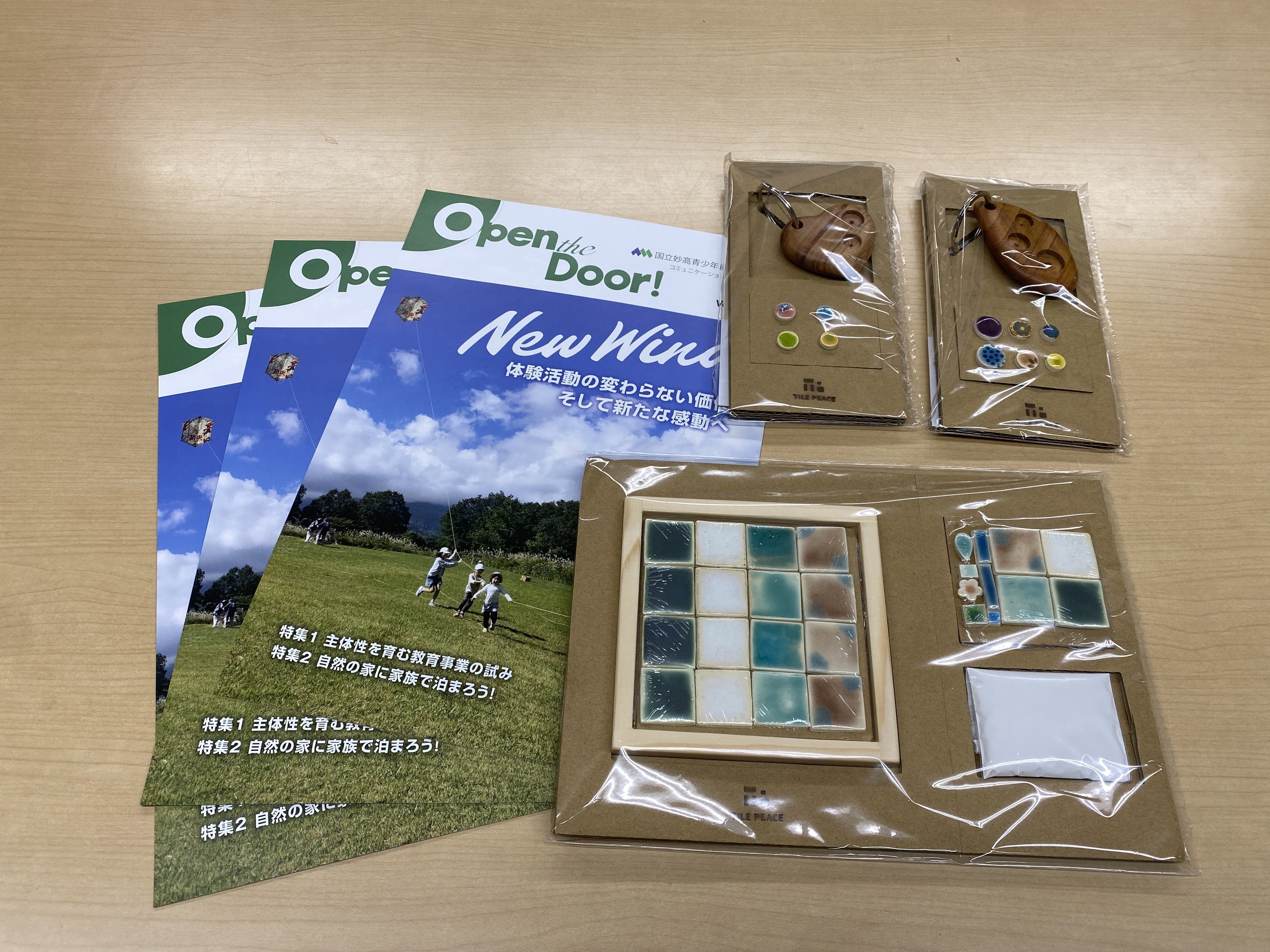 皆さん、おはようございます! 雪が多かったホワイトシーズンも終わりを迎え、妙高青少年自然の家でもグリーンシーズンに向けて着々と準備を進めています。 さて、返礼の体験キットが完成しました。そこで体験キットを受け取りに高田特別支援学校へ行ってきました!!!今回は、陶工班と木工班から代表の2名の生徒さんから受け取りました。 たくさんのキーホルダーキットとタイルコースターキット、とても綺麗で素晴らしいです。タイルの型抜きで上手に抜けるように工夫したり、キーホルダーの仕上げに蜜蝋を塗ったり、1つ1つ使ってくださる方々を思って丁寧に制作したそうです!本当にありがとうございました。 近日中に郵送しますのでしばしお待ちください!作り方もキットに同封されておりますので、世界に1つだけのオリジナルキーホルダー・コースター作りを楽しんでくださいね!