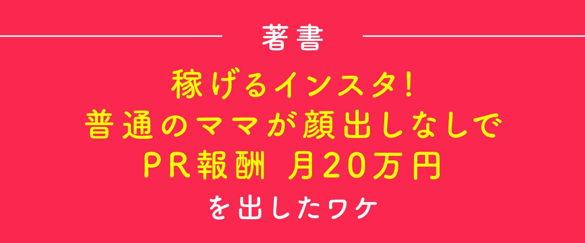 そこで作ったのが、著書『稼げるインスタ!普通のママが顔出しなしでPR報酬 月20万円』です。