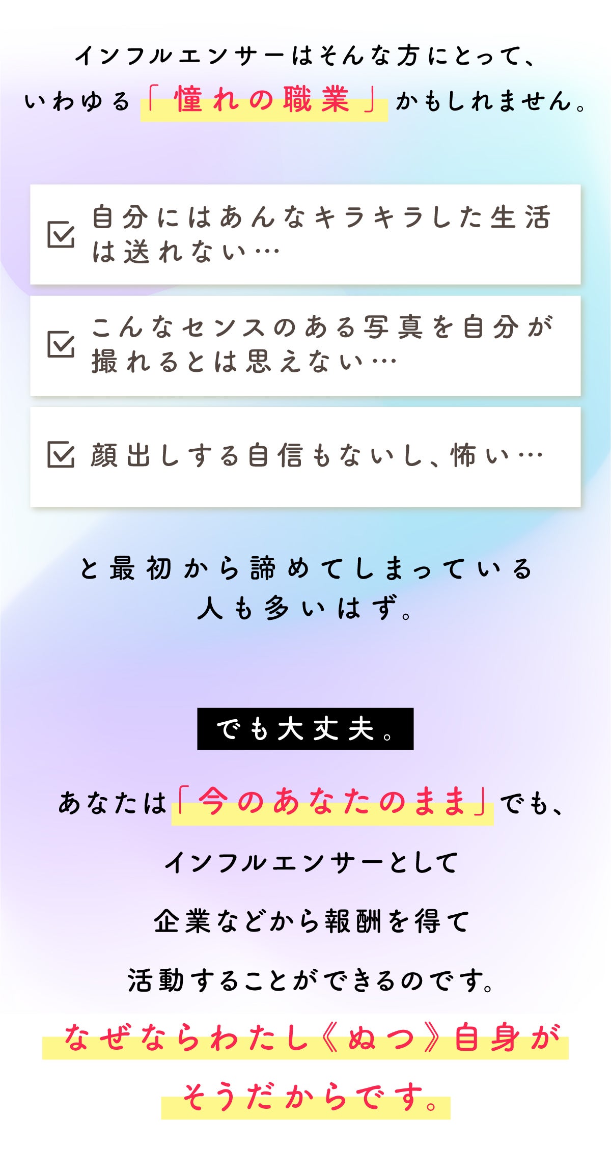 いつも温泉のような安心感で全肯定してくださるぬつさんと、自分らしいままインスタで稼いでいける、