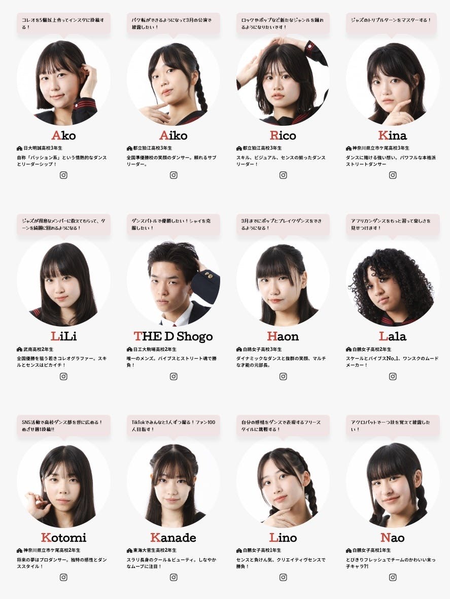 私たちは昨年9月のオーディションを経て、関東圏の複数の高校から集まった12人です。