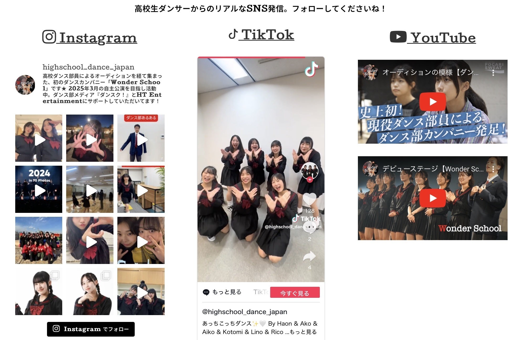 こんにちは、現役高校ダンス部カンパニー《Wonder School:ワンダースクール》です!