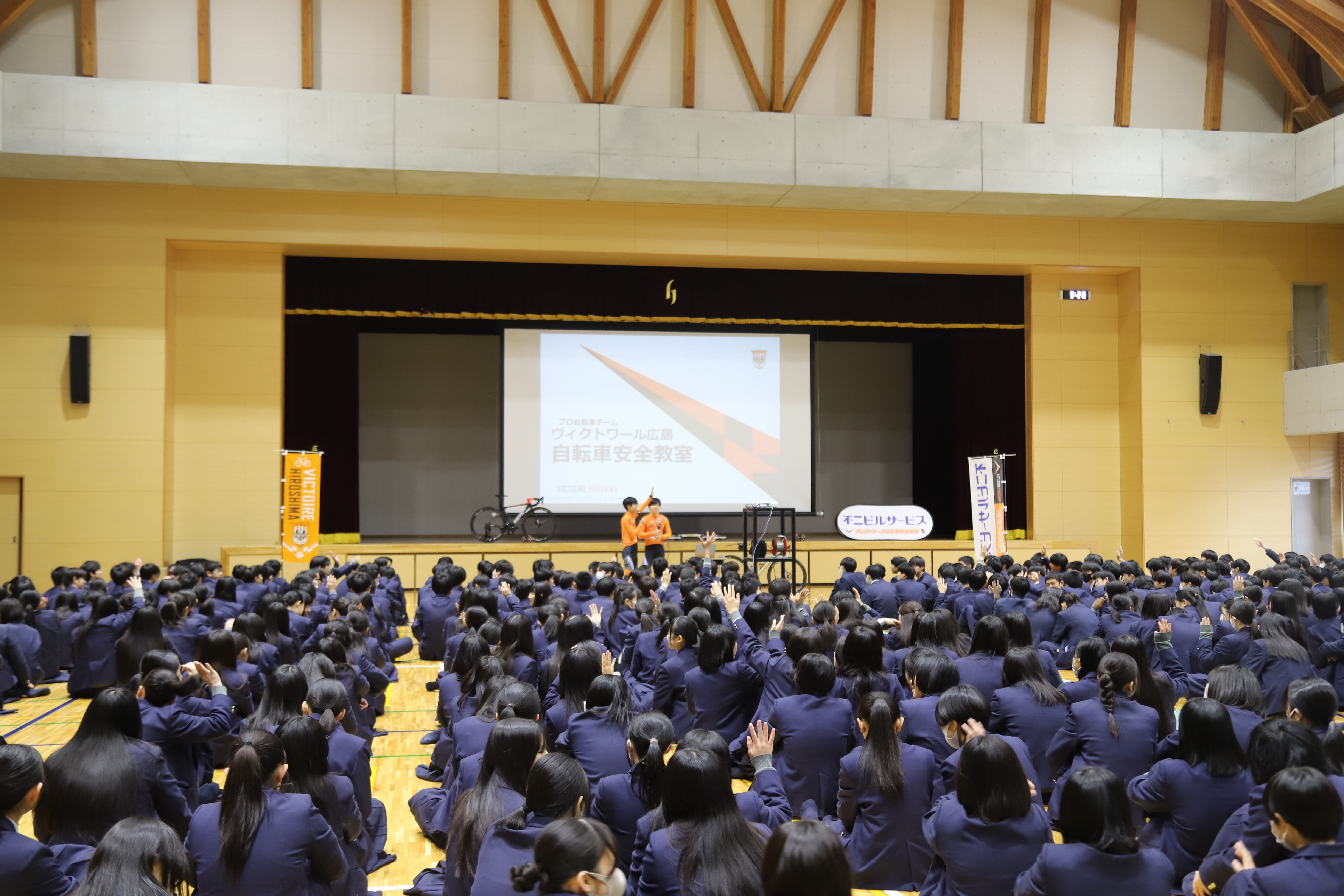 レース参戦以外に学校などで自転車安全教室を開催したり、行政の啓発活動への参加やイベント出演など地域貢献活動に参加します。三原市や東広島市と連携協定を締結するなど行政との連携も深めています。
