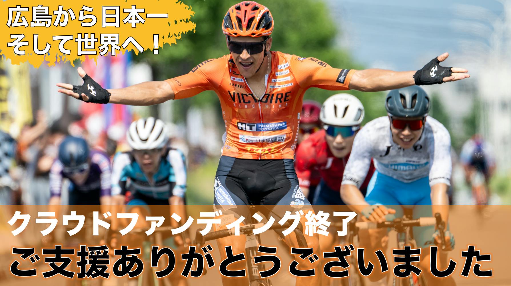 チームが立ち上がって10年目、広島クリテリウムが立ち上がって7年目。チームにとって悲願の広島クリテリウム優勝がついに現実となりました。