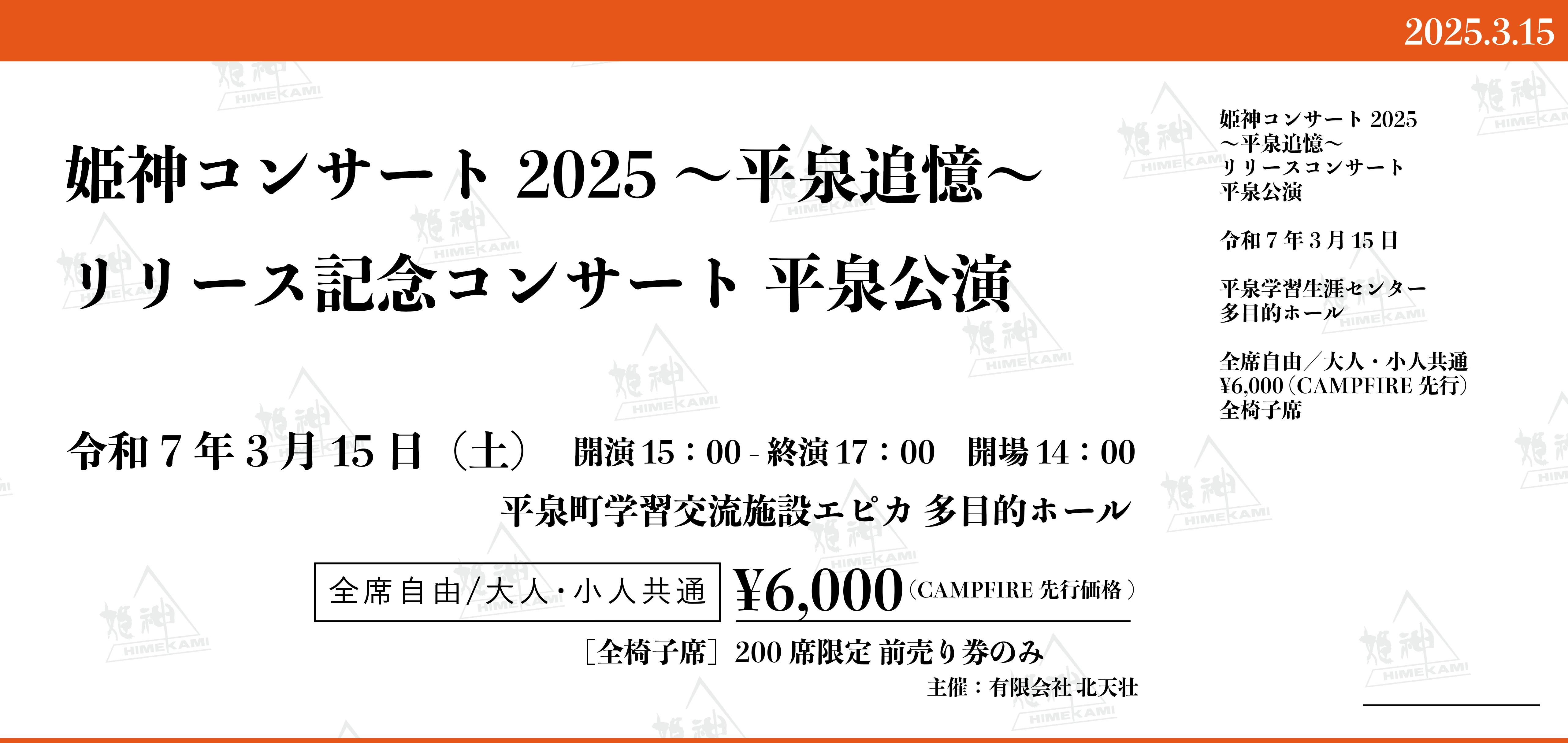 「姫神コンサート2025〜平泉追憶〜リリース記念 平泉公演」