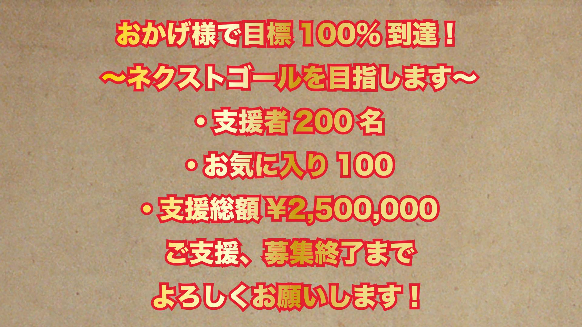 支援者200名、お気にいり100に到達出来ますよう、引き続きご支援賜りますよう何卒、よろしくお願い申し上げます!