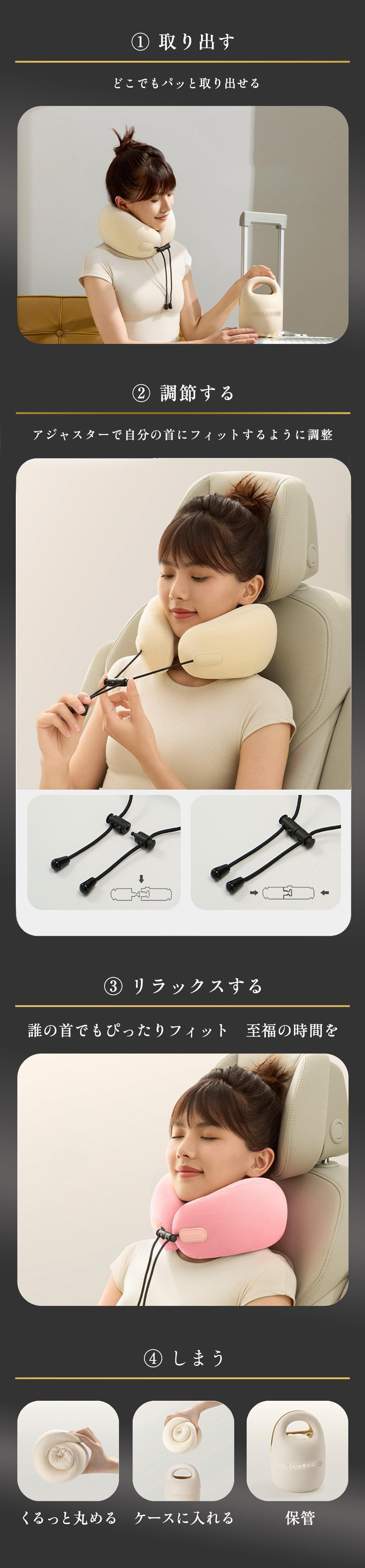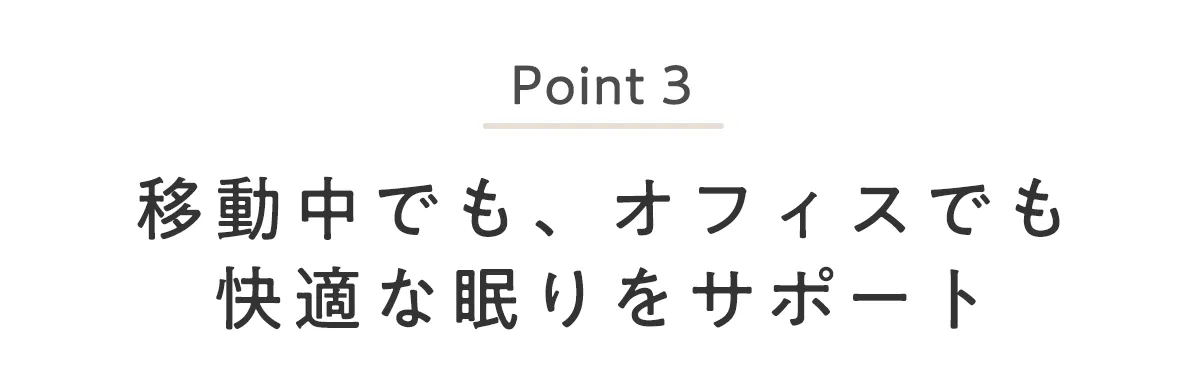 飛行機や新幹線での移動時はもちろん、オフィスでの休憩や自宅でリラックスしたい時にも快適にご利用いただけます。