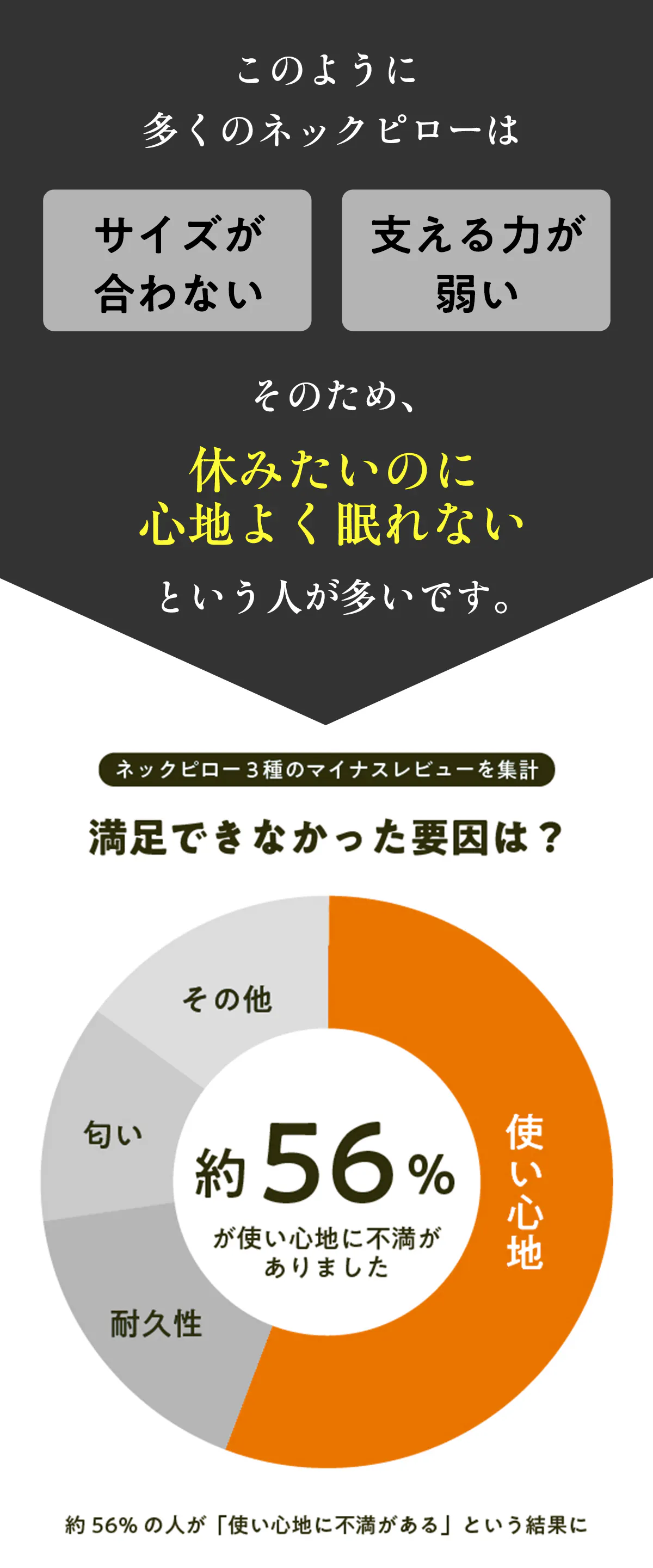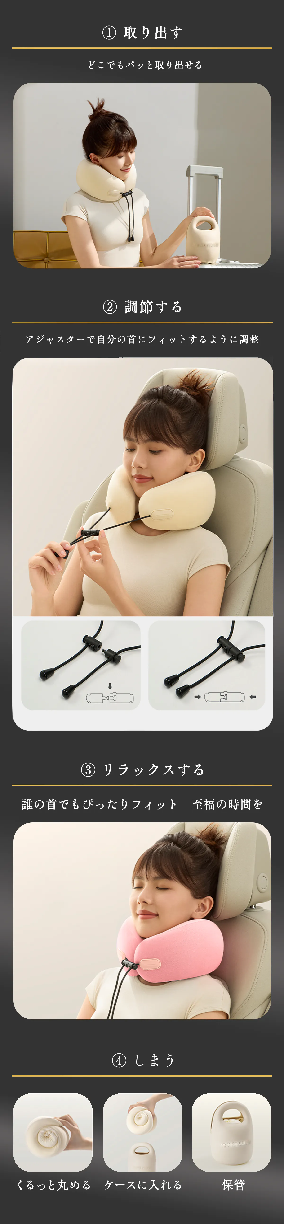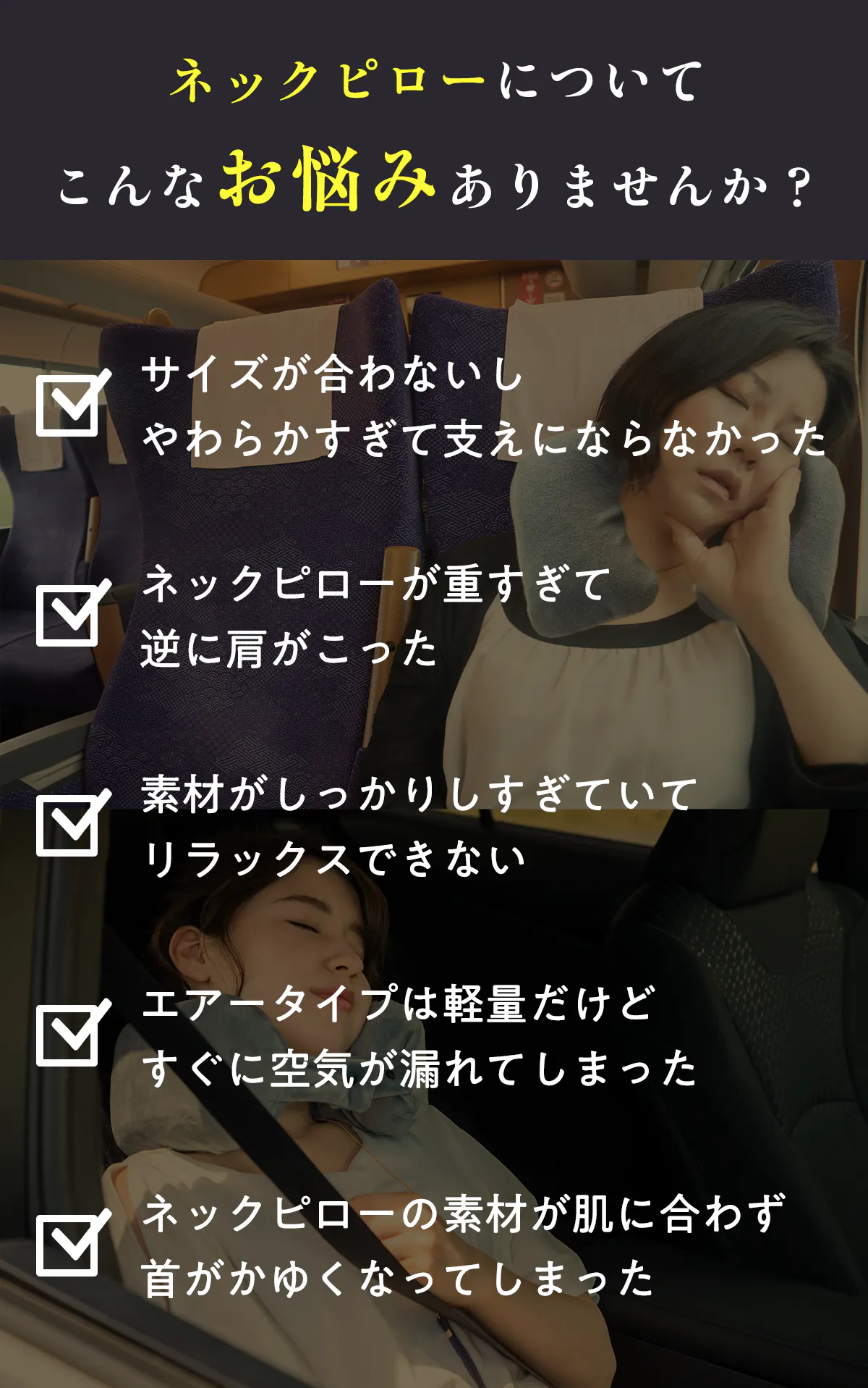 今までのネックピローのように、「硬すぎて眠れなかった」「柔らかすぎて首が動いてしまった」「エアータイプで空気が抜けてしまった」ということもありません。