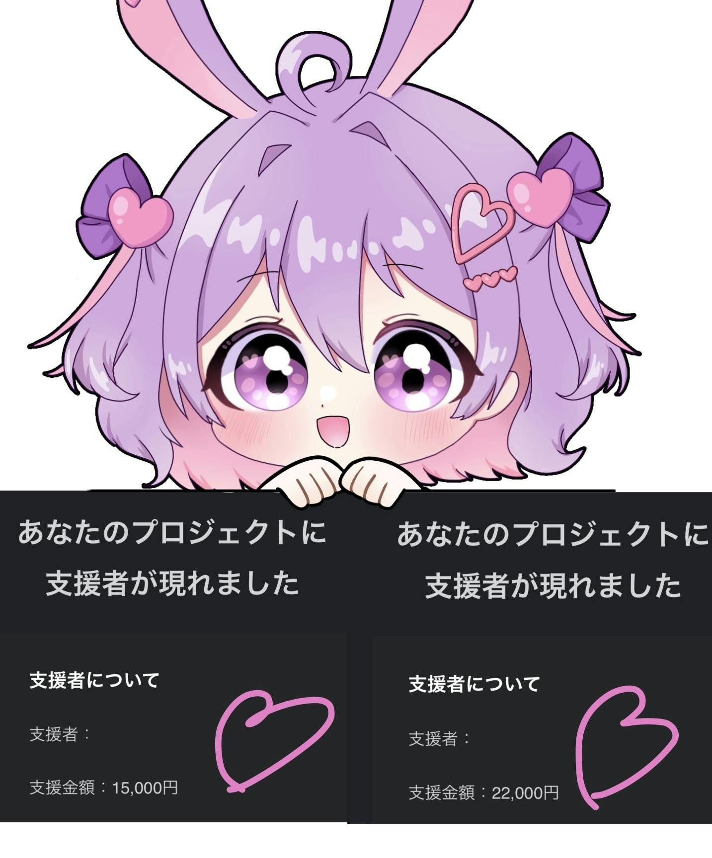 ご支援ありがとうございます!!!!追加リターンをご支援してくれたおふたり本当にありがとう…!!!!二人とも2回目のご支援…沢山支えてくれて本当にありがとうございます(т-т)ご支援とかでもそうだけど、SNS頑張ったりしてるからそれに反応してくれたりとか拡散してくれたり褒めてくれたりほんとにほんとに力になってます…!みんないつも本当にありがとう…!!!ありがとうしか言ってないけど本当に何度言っても足りないくらいの大感謝パラダイスです。本当にご支援してくれたり、褒めてくれたりしてくれるのを見る度に涙出てます本当に流れてます嘘じゃなくて…仕事中に大号泣なので、本当にリモートでよかったなって思ってるよ( ˘ᵕ˘ )ていうか、本当に可愛いよねグッズ…自分の分も調達しますわ絶対に!!他のリターンのビジュアルも楽しみにしててねっ!!本当にありがとう!おやすみ〜!!!