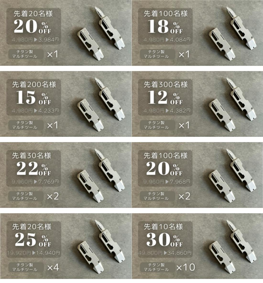 このツールは、コンパクトでありながら多機能を備え、美しいデザインと高い実用性を両立させることを目指しました。ボディには耐久性に優れたチタンを使用し、ナイフ部分には美しい模様と鋭い切れ味を持つダマスカス鋼を採用しています。これにより、日常のあらゆる場面で信頼できる相棒となるツールを提供しています。