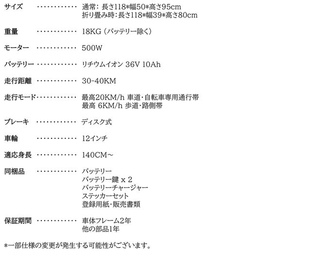 車体は専用のBOXでお届けいたします。車体の同梱物は上記スペックでご確認ください。