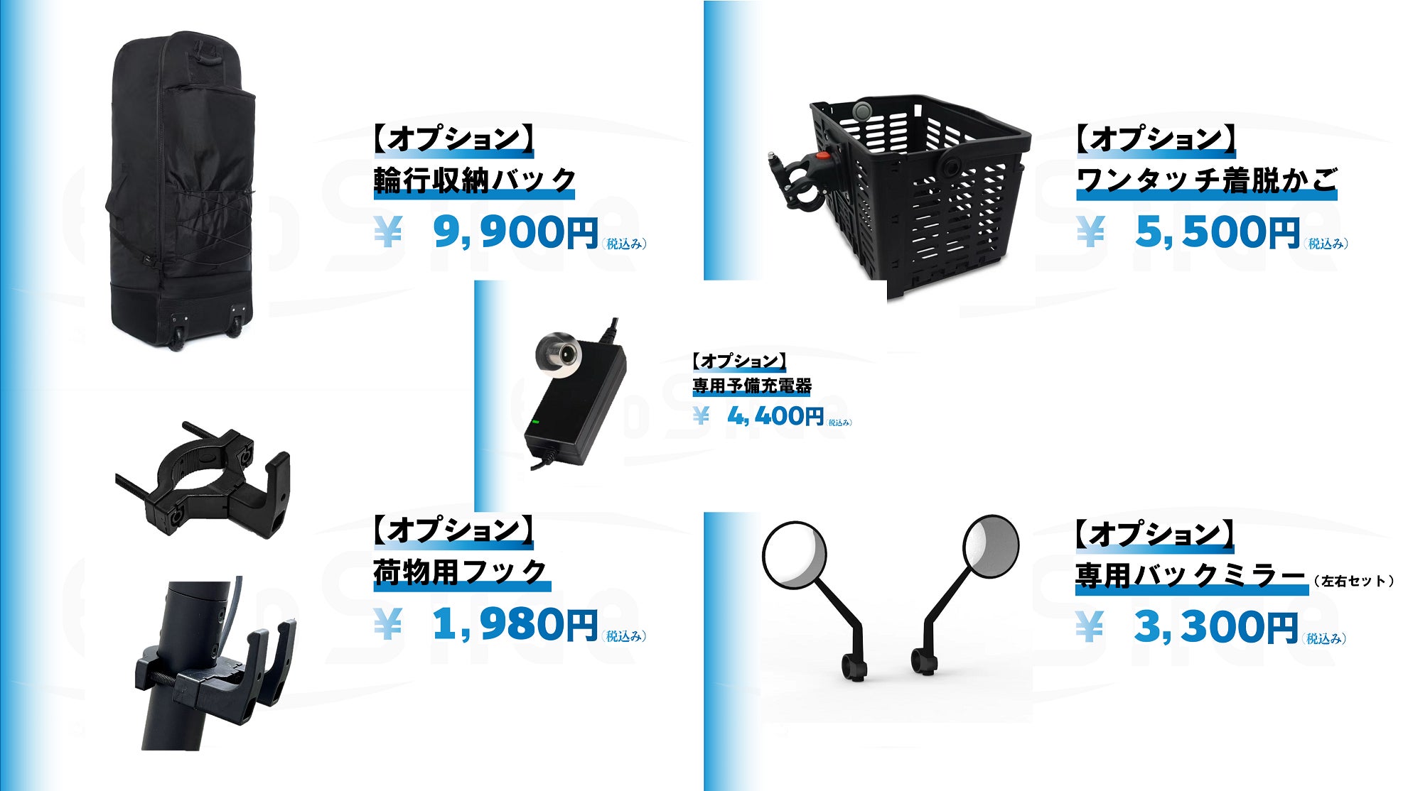 (オプション購入で約2倍サイズの荷物入れバスケットの変更が可能です。)