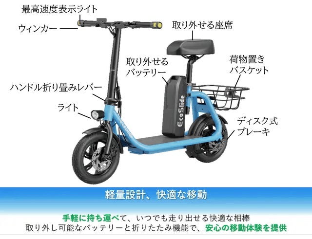 手軽に乗れる電動スクーターは、利便性の高い交通手段として都市部を中心に利用者が広がっています。EcoSlideの開発者が人間工学の知識を活用して、現在の重い・長時間の運転は疲れる等の電動スクーターの弱点を克服しました。