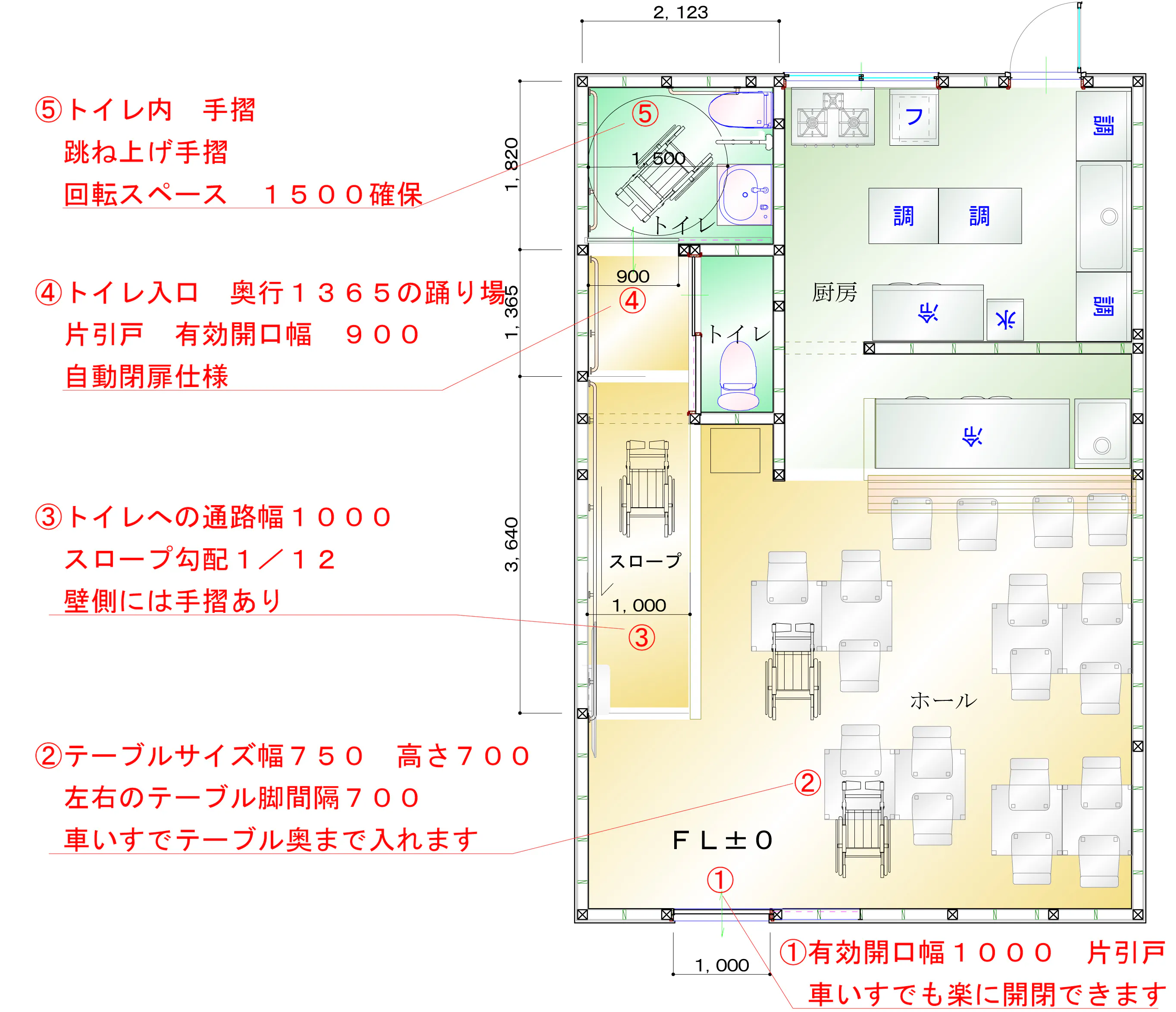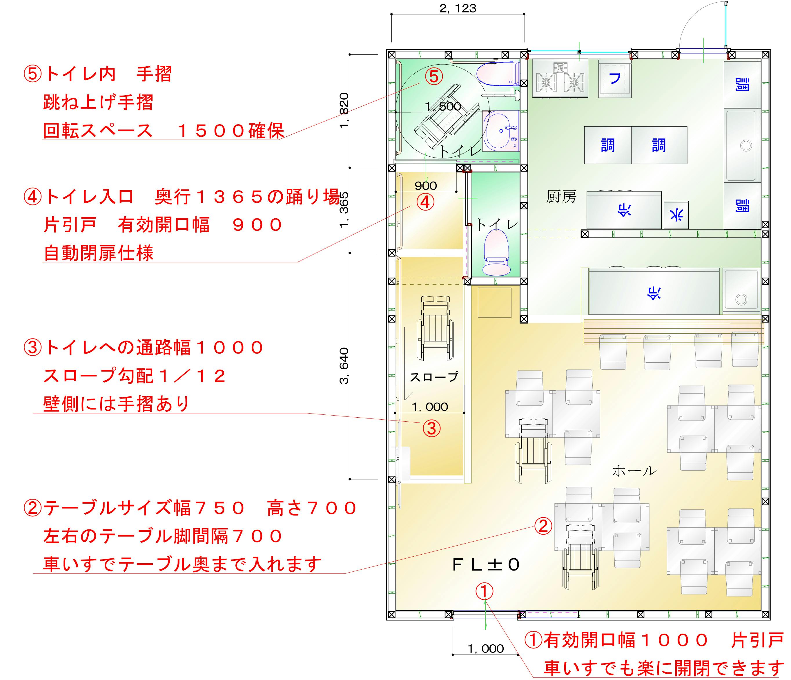 トイレ、間取り、通路の幅やテーブルなど細かい事を拾い出してみたら