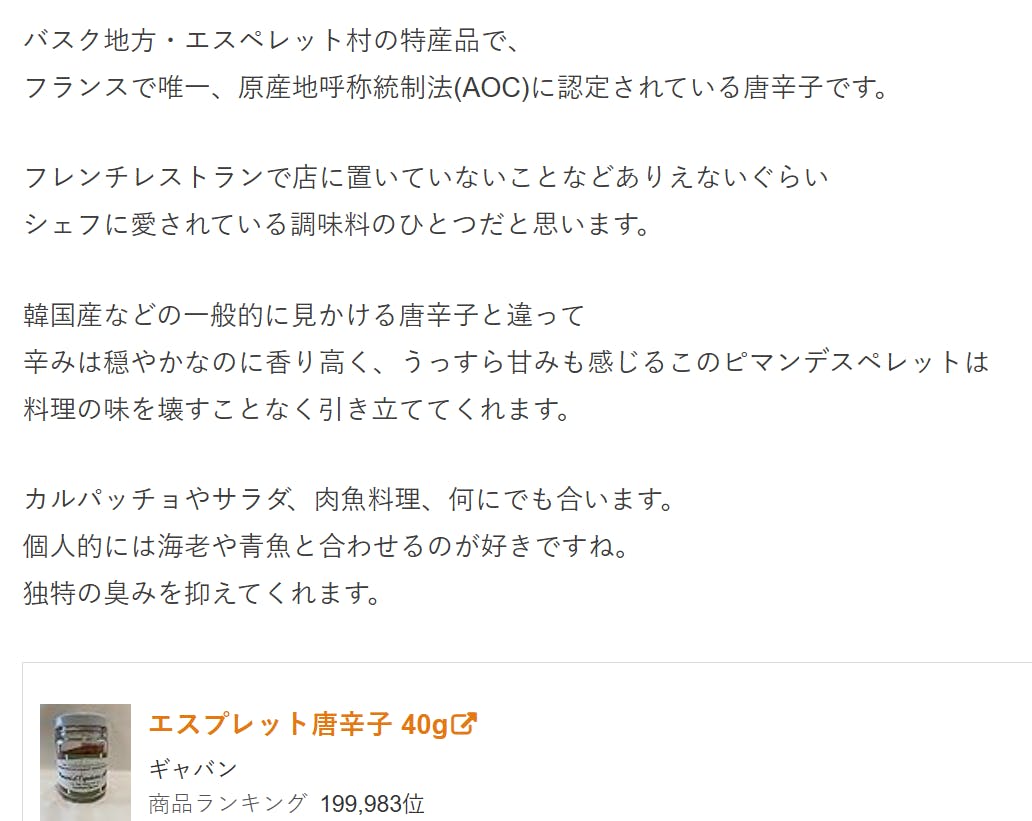 たまたまピマン・デスペレットを調べていましたら、フレンチのシェフの言葉がありました。