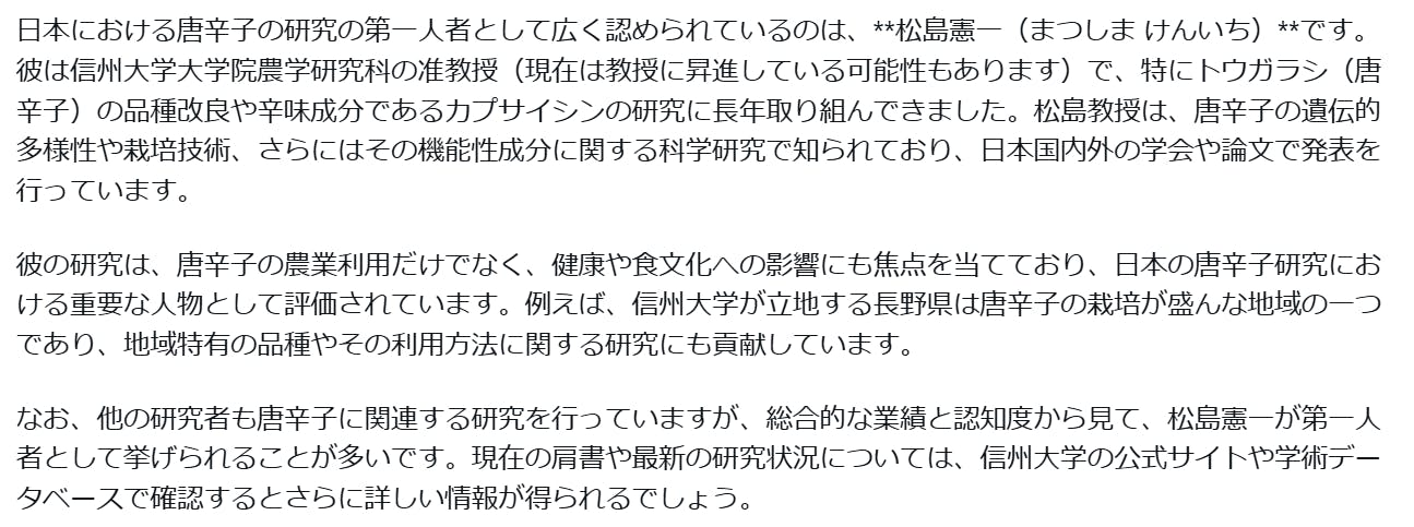 たまたま地元になる信州大学の松島憲一教授(現在)で、当社の軽井沢胡椒を「良い色をしていますね。香りも強いです」と評していただきました。
