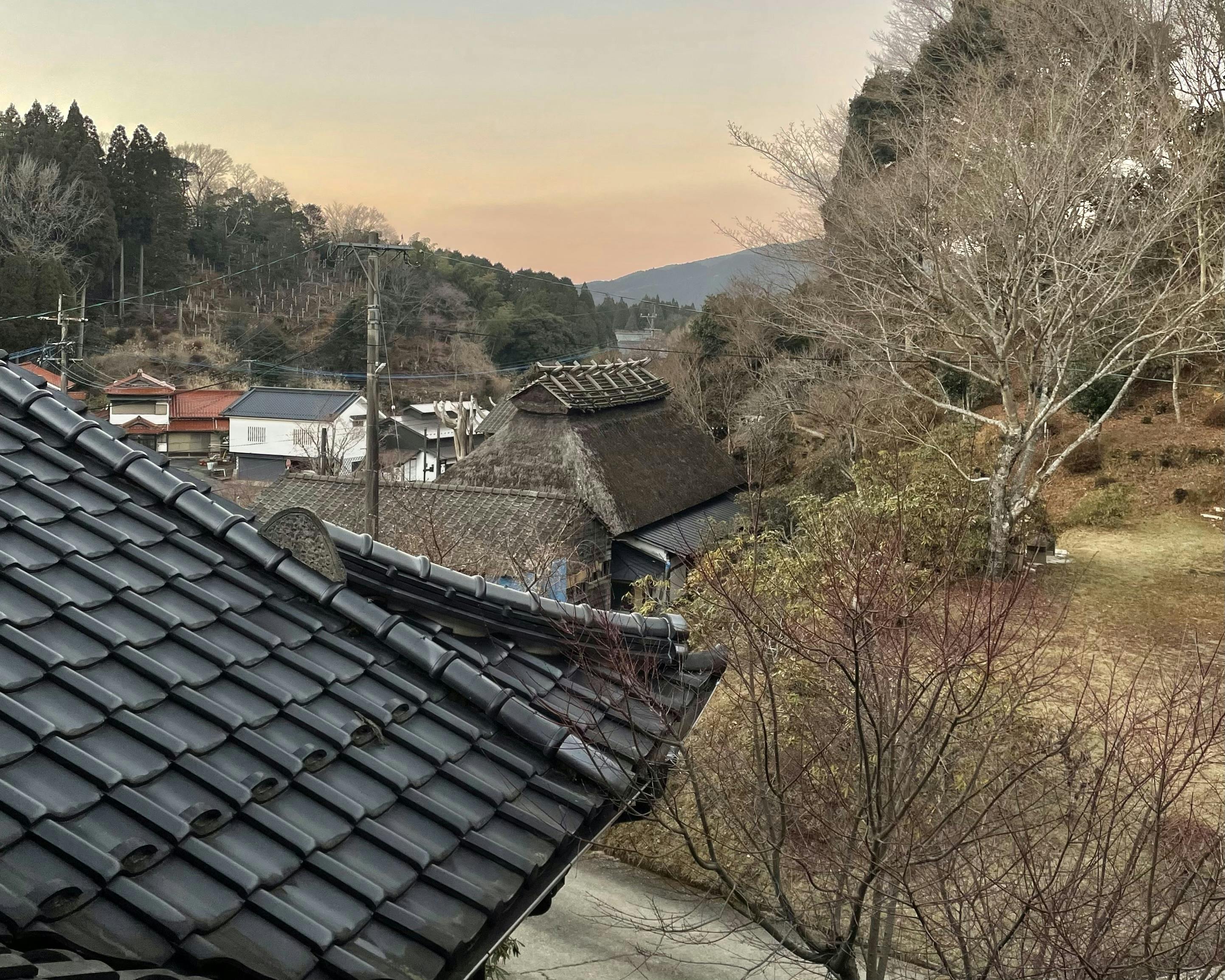 写真は療養中の部屋の窓から、今年最後のかやぶき屋根のワンショットです。