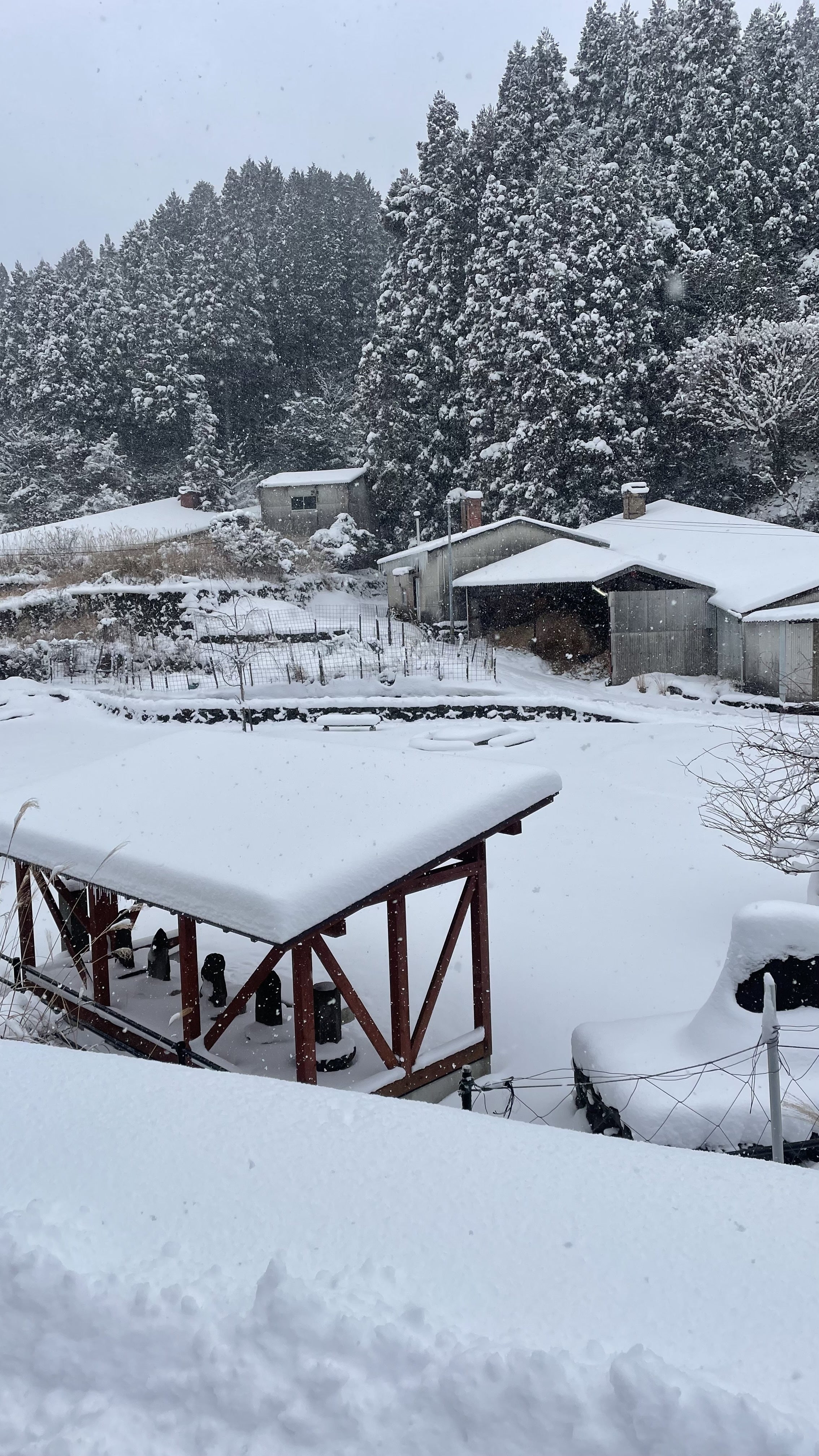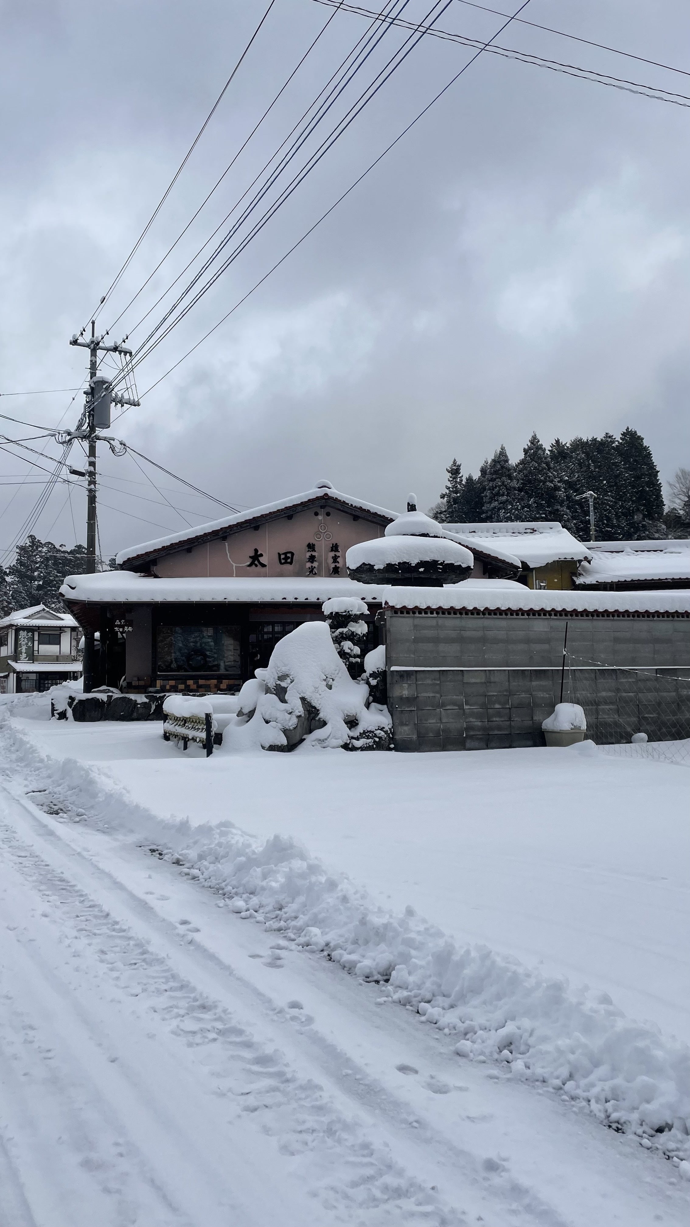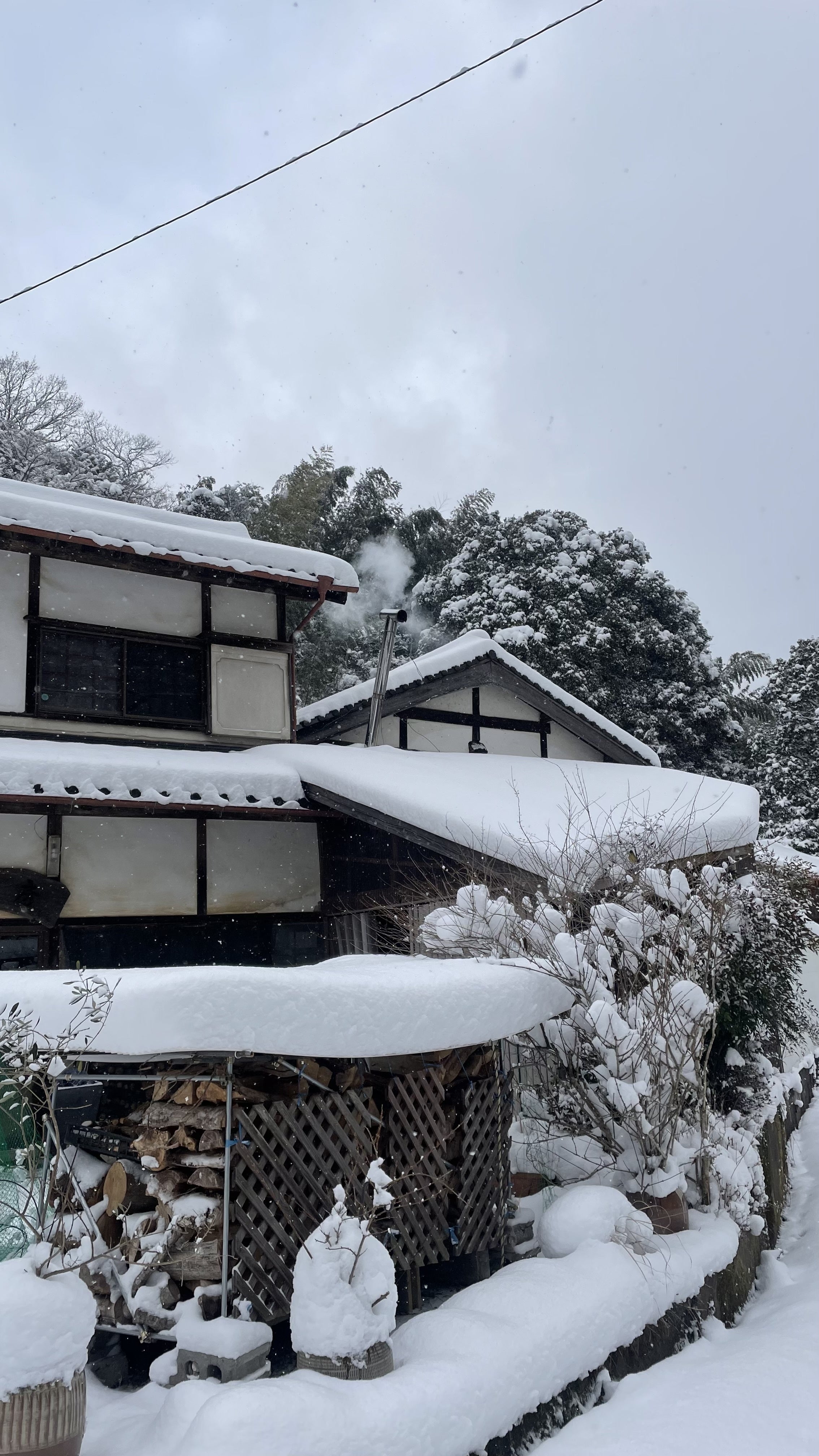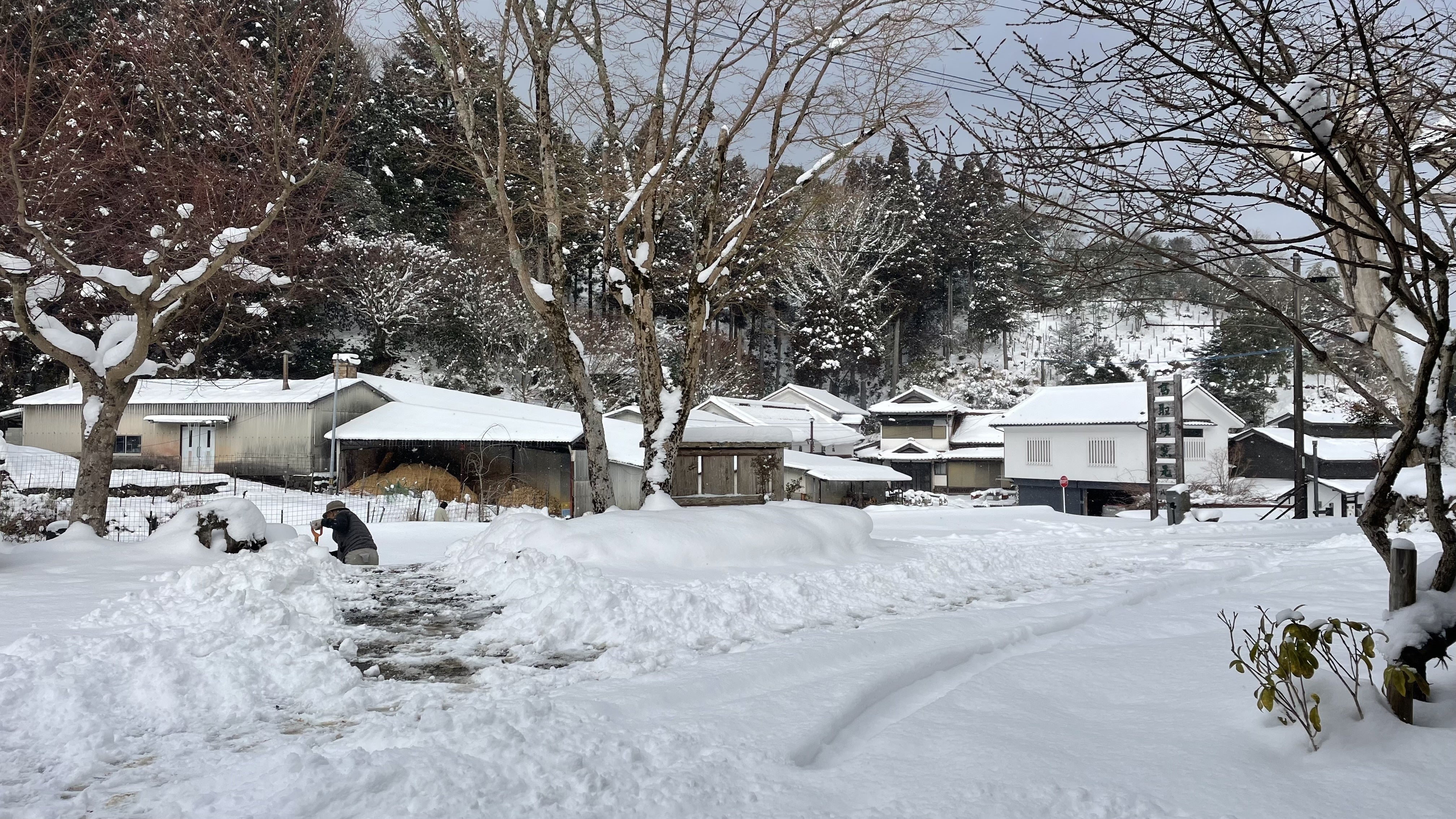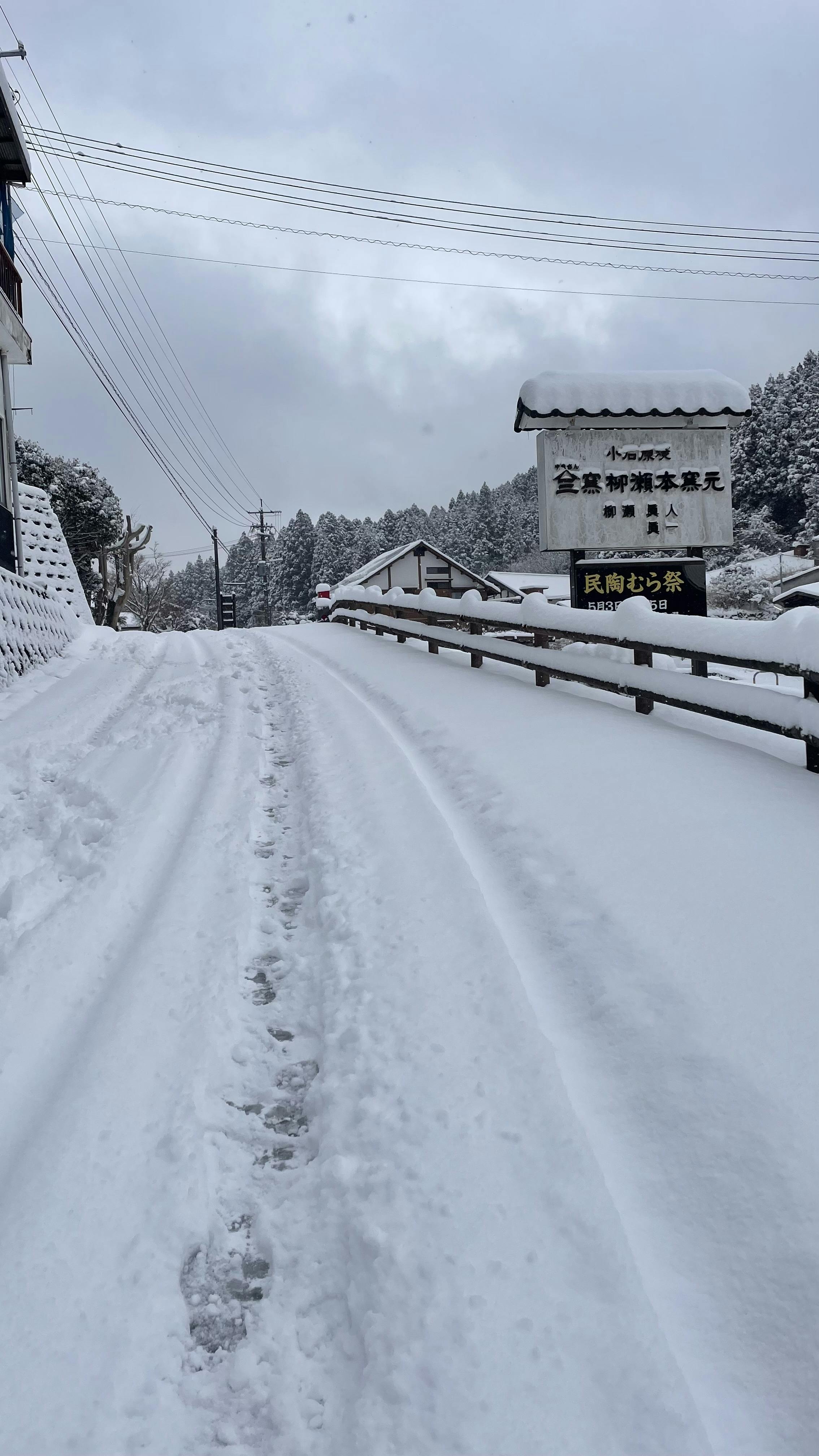 今もなお降り続けている雪は一面を覆っています。皿山はまるで墨絵のように静かで美しく、雪の白がすべてを包み込む景色は柔らかい印象です。でも、その美しさとは裏腹に特に朝の冷え込みは厳しく、仏壇の花瓶の水は凍っていたりします…!