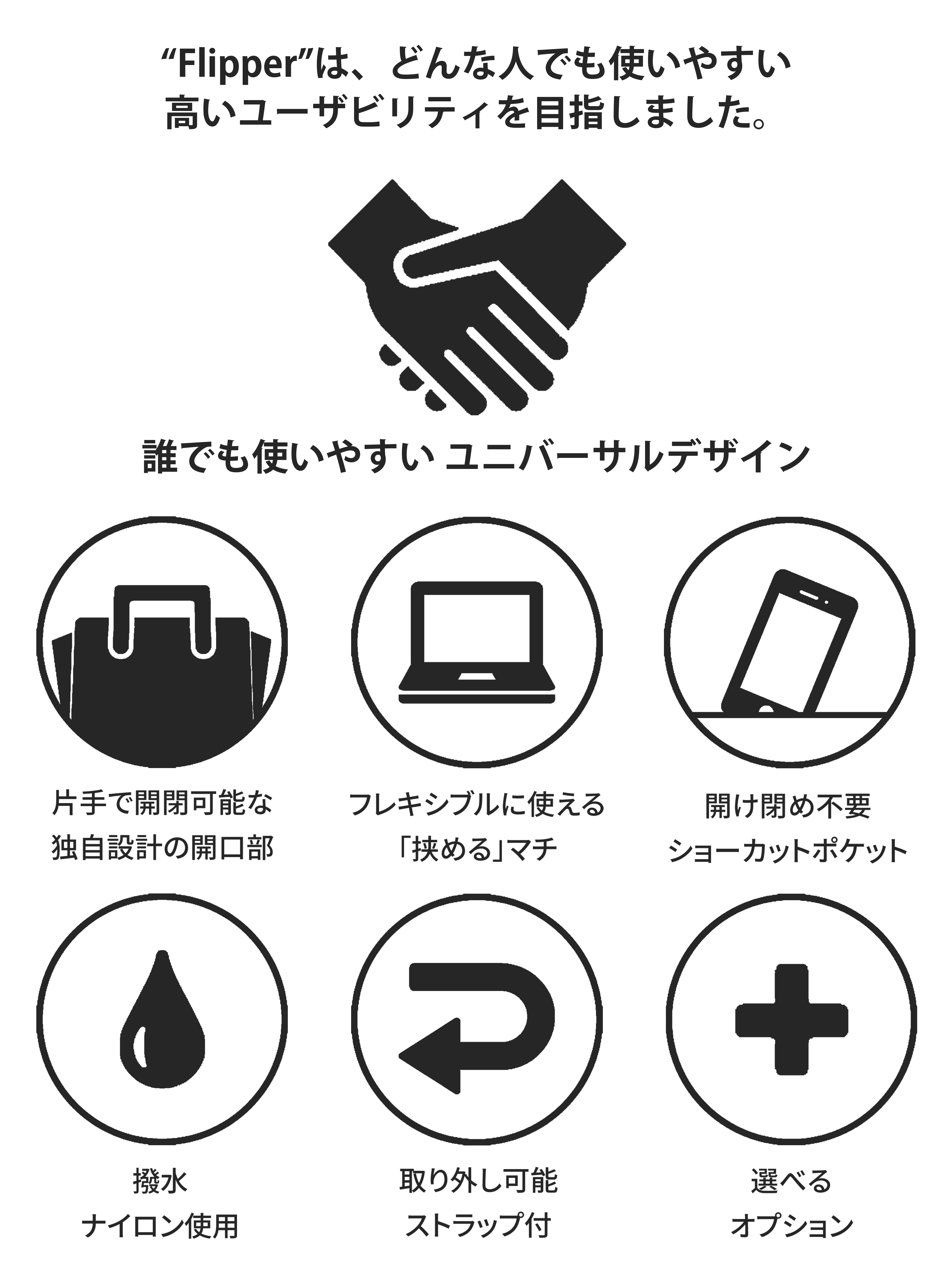 Flipperはトレンドやスタイル、年齢に関係なく、長く持てるバッグを目指しました。長くご愛用いただきたいからこそ、心からご納得いただいてご支援いただきたいと考えます。