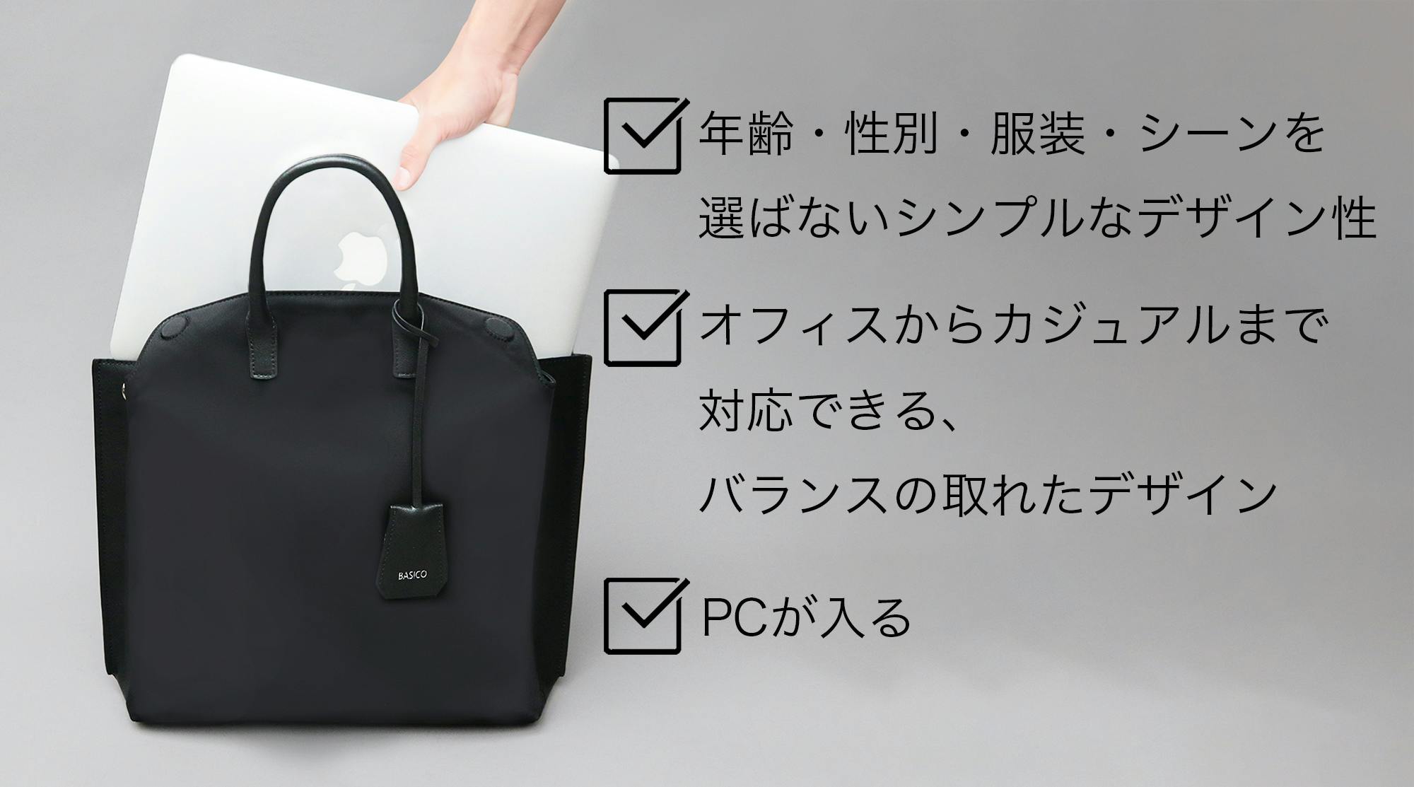 だからBASICOは、男性らしい、おじさん臭い等どうしても絞ったターゲット向けのデザインになってしまいがちなビジネスバッグを、
