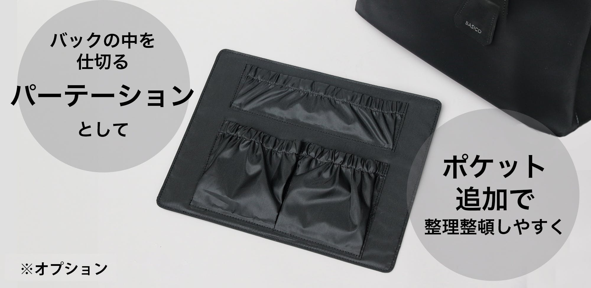 入れたい物に合わせて挟んだり、取り外したりと、バッグ内スペースを自由に変化させて整理整頓することが可能です。