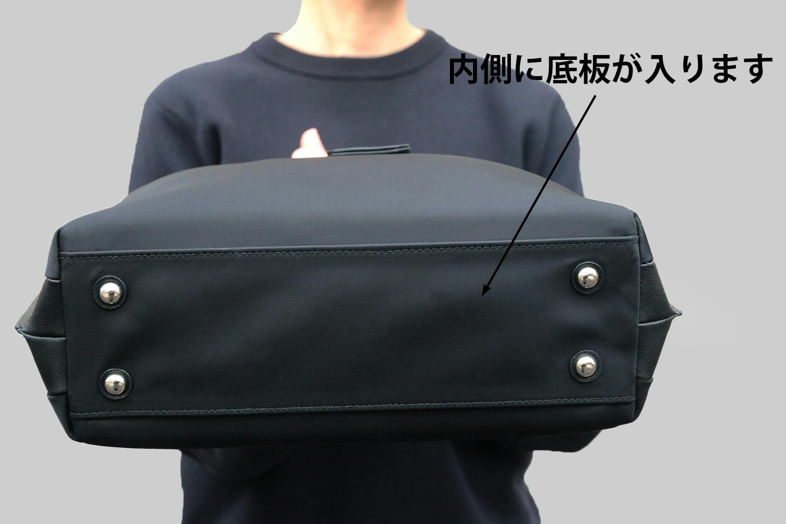 ノートPCやファイルなど、大きなものや重いものを入れるとどうしても比重が高い方にバッグが傾いて、バッグを置いた時に倒れてしまう。そんな経験はありませんか?
