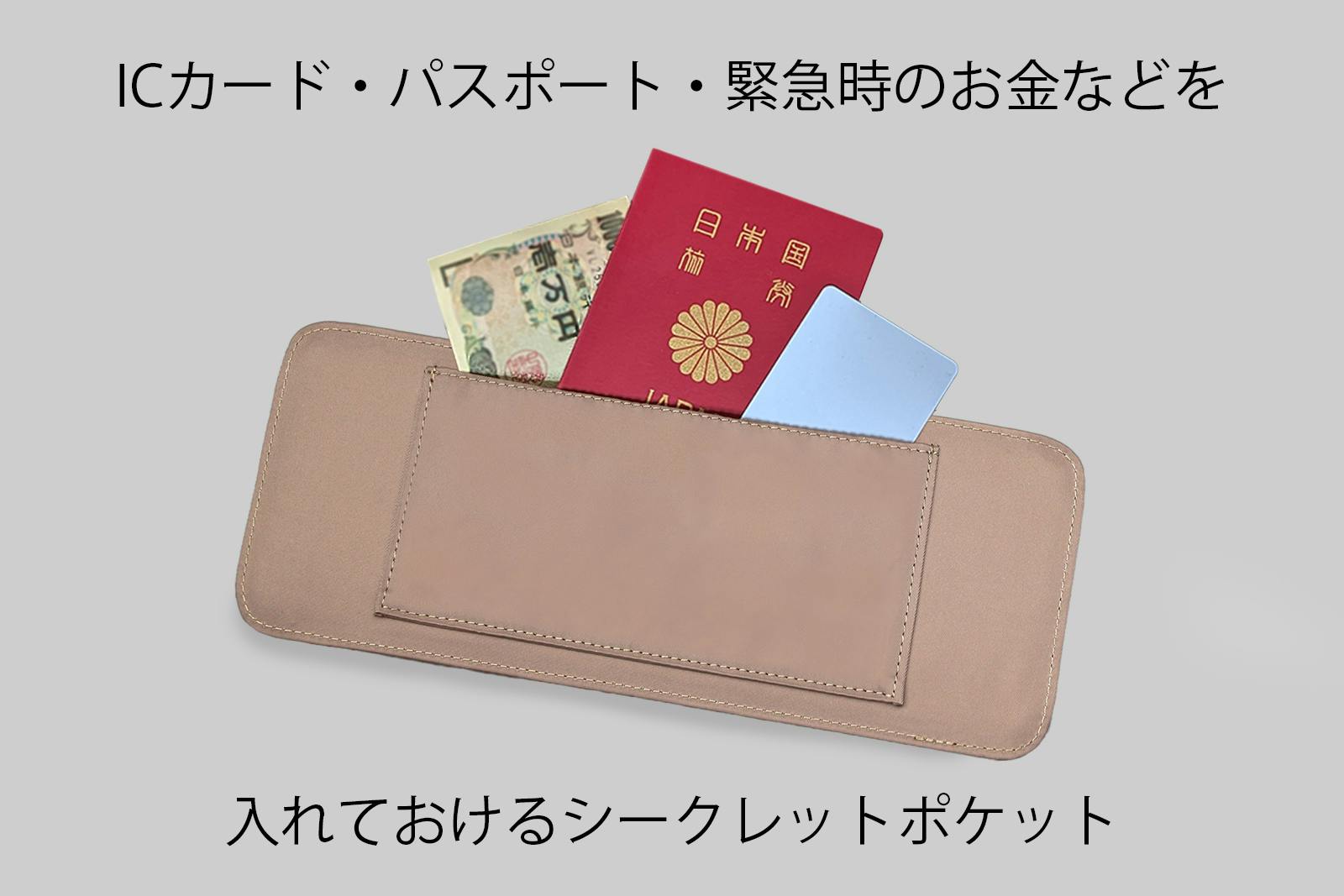 旅行時にはパスポートも入れられ、緊急時のためにカードやお金を入れておくのもおすすめです。