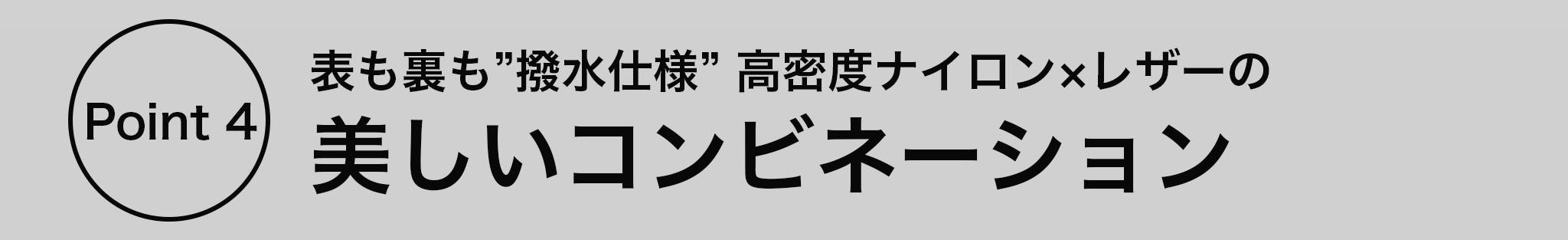 だからこそ、機能的なナイロン素材の中でも、より高密度で、より美しく高級感のある素材を探し出し、シーンを選ばず毎日気兼ねなく使えるバッグとして、制作しました。