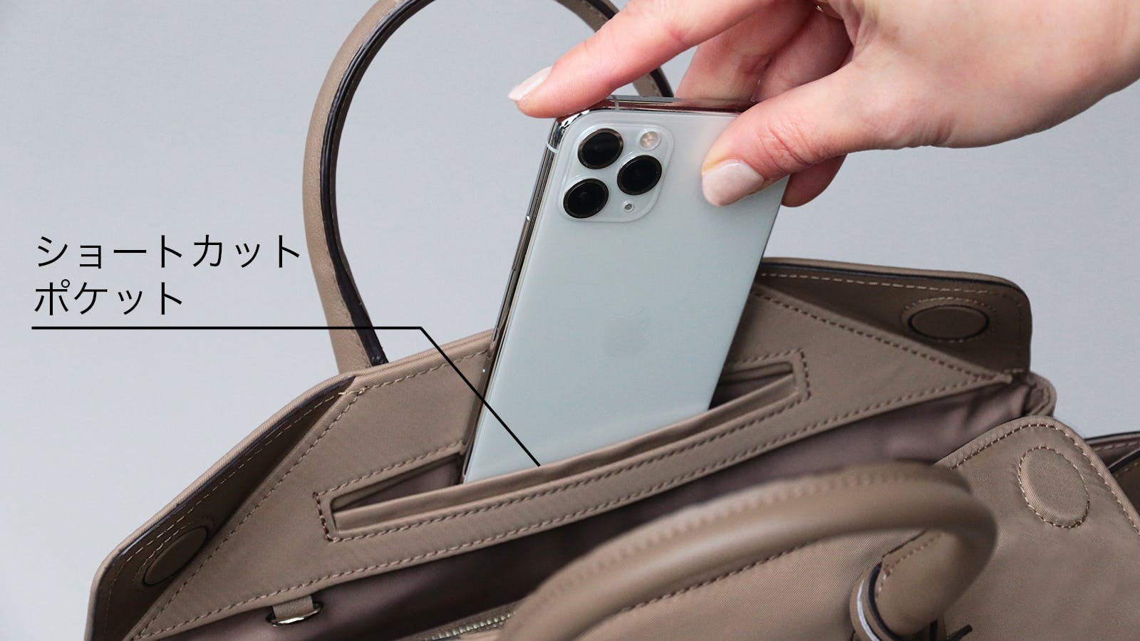開口部には、開け閉め不要の【ショートカットポケット】を搭載。