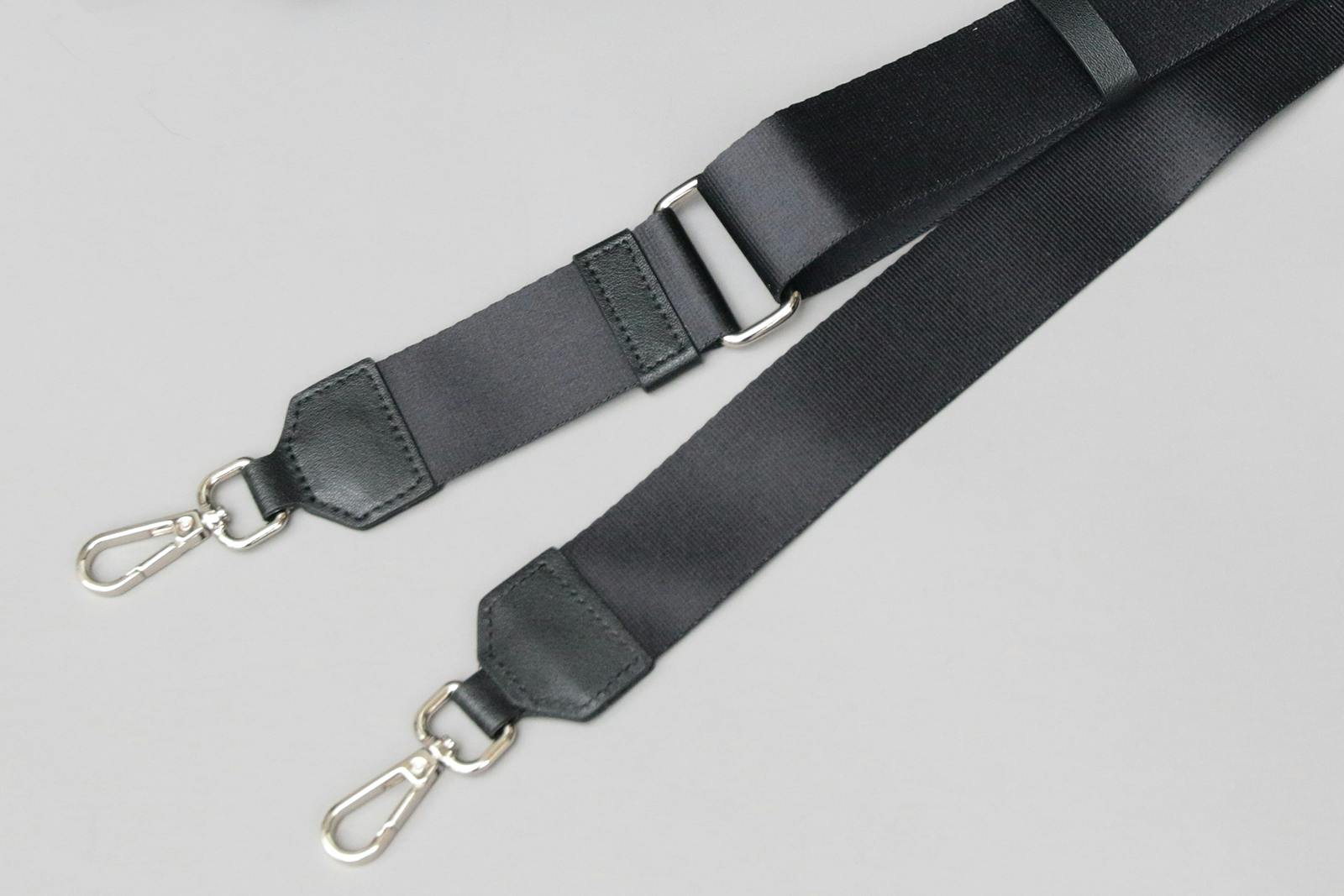 自然な光沢を持つストラップの素材感と、革のコンビネーション。