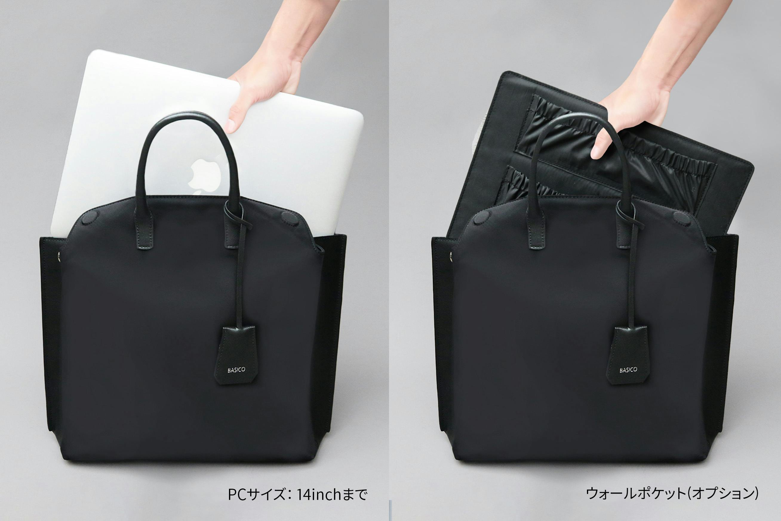 さらに、ノートPCやウォールポケットなどを”挟めるマチ”もBASICOオリジナル。