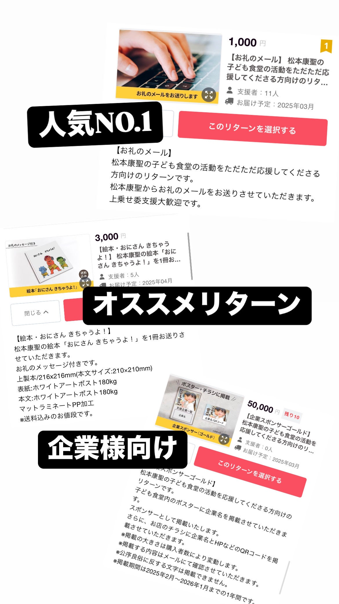 沢山の方にご連絡させていただきましてご返信してもらえるだけでも中々ない事なのでありがたいのにご支援までいただけて最高に嬉しい気持ちでさらに応援コメントをくださり、本当に感謝感謝で涙が出る一歩目前です。アスリートさんとかと一緒で応援だけで頑張れるんですね。ありがとうございます。応援がなくなったら活力なくなるのでやめますね!爆さぁ、クラファン終わってからが勝負です。手数料払ったりリターン返したりしたあと毎日開催できるように寄付サブスクに入ってもらう活動をして栄養士さんに頼んで、毎日スタッフを配置して食事を提供できるようにしないとです。今回のクラファンで1ヶ月50万円1回限りの寄付はおかげで成功できました(TT)これからは毎月10万円ぐらい集めないと毎日子供食堂の開催が出来ないので実現するまでにめちゃくちゃ時間かかると思います(><)そうゆう意味でこれからが本番であり、1番の難所です!!!!!引き続きよろしくお願い申し上げます!