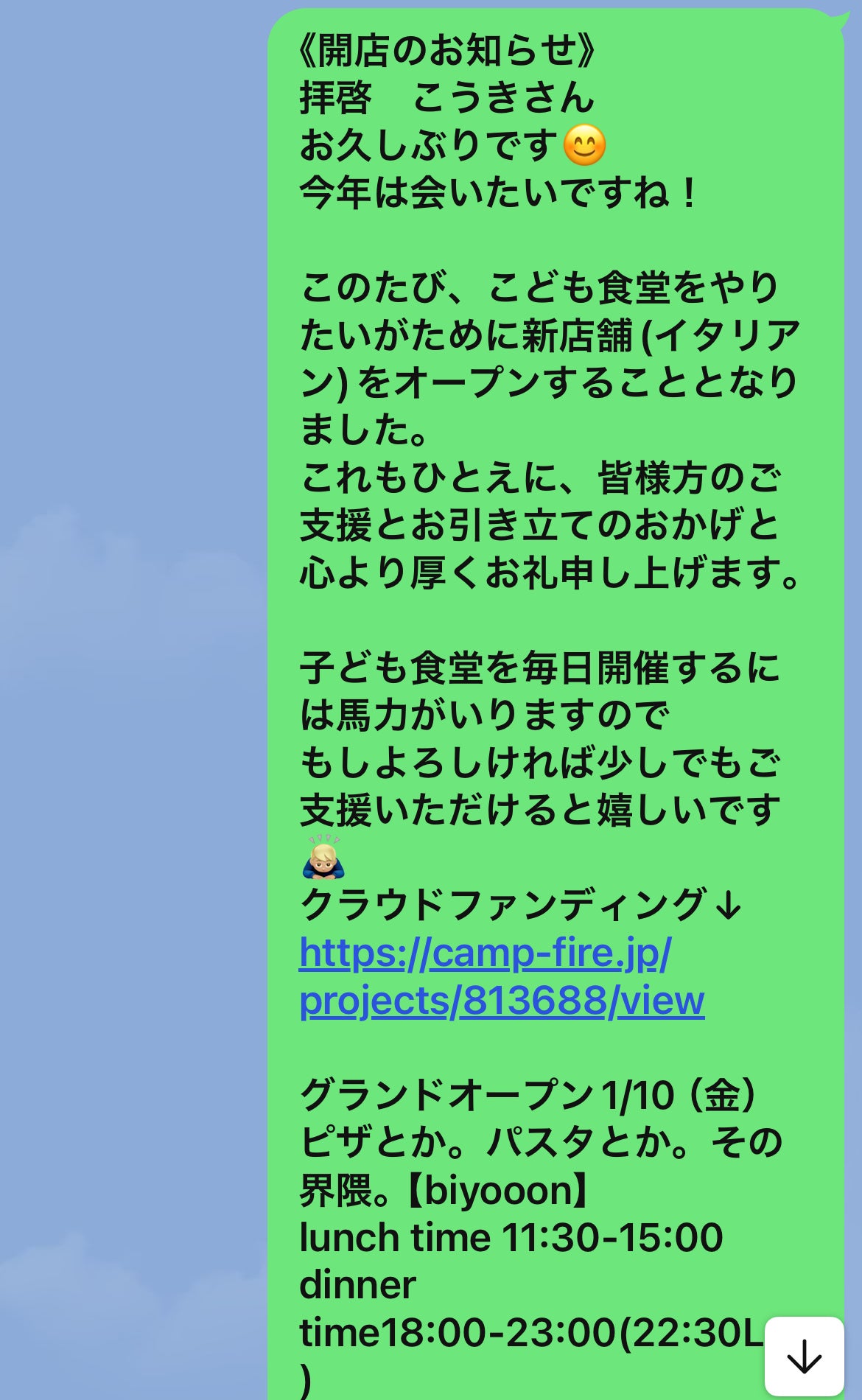 少しずつ分けて連絡していってるのはクラファンページの閲覧数をコンスタントに上げるためです(>人<;)ぶあーとLINE送り切ってぶあーと閲覧増えて後半失速するのが怖かったので分割して送っていってました!遅くなった方々申し訳ございませんm(._.)mしっかり1人1人文章変えて送らせていただきました!!( ̄^ ̄)ゞほとんど返事返ってこなかったのは僕の人柄の問題です(>_<)ご返信くださった方々ありがとうございました(;o;)嬉しかったです!関西エリアの人には送り終えました!次は遠方の方々に連絡していきます!走り切ります!一緒に未来(子供)をそだてましょー(๑ ऀืົཽ◞ ˙̫̮ ◟ ऀืົཽ๑)