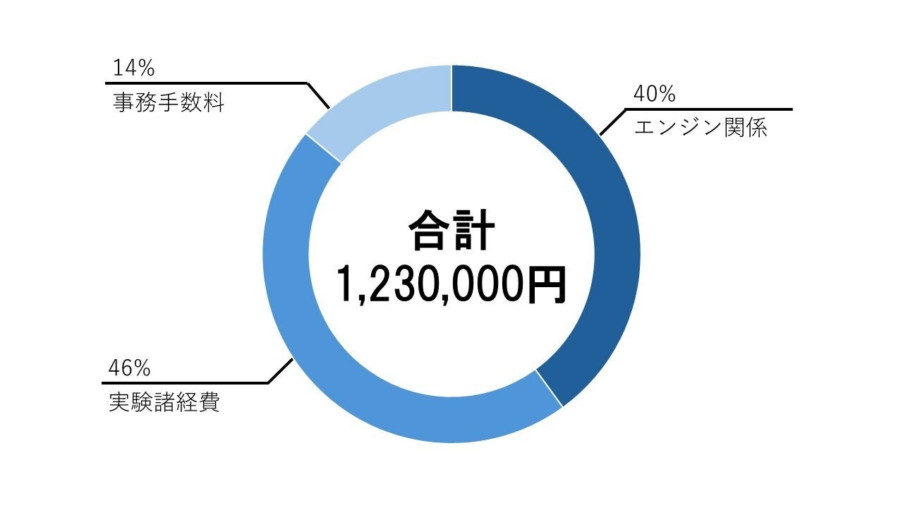 図2 クラウドファンディング内訳エンジン関係は、エンジン製作やボンベ、アクチュエーターなどを購入するために使用させていただきます。また実験諸経費は自作エンジンの実験実施にあたってかかるレンタカー代などの費用に使用させていただきます。事務手数料はCAMPFIREの手数料に使用させていただきます。