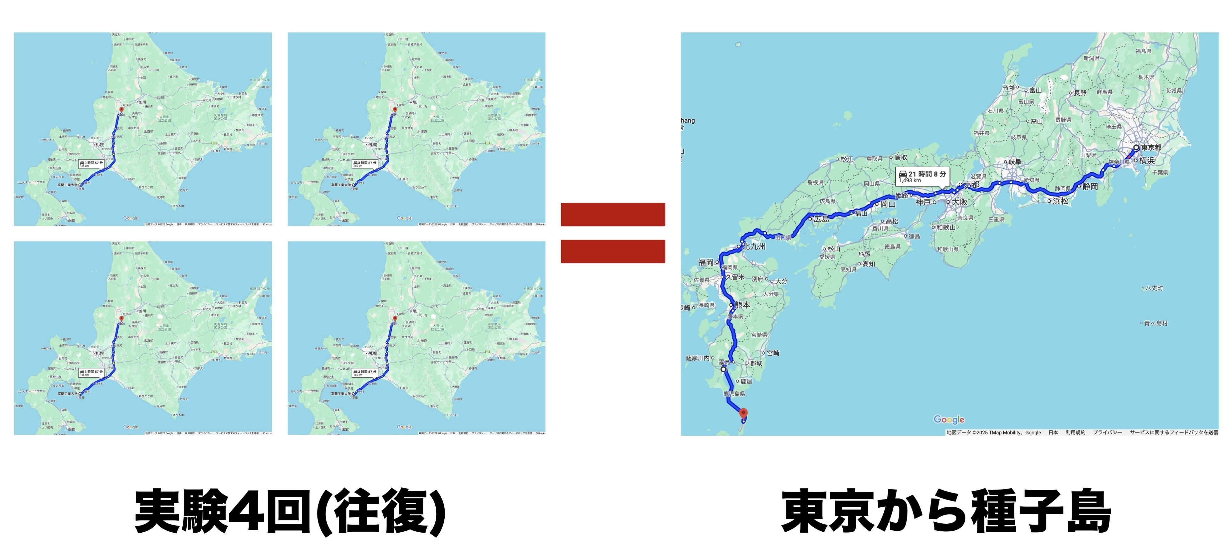 私たちがロケットの打ち上げを行う過程で必要なエンジンの燃焼実験を行うためには、室蘭から185km離れた植松電機まで移動する必要があります。さらに、実験は複数回にわたって行う必要があり、計4回実験を行うと移動距離の合計は1480kmにもなります。これは、東京から種子島までの移動距離に匹敵します。この距離を移動するために、毎回の実験でレンタカーを借り、物品の運搬や部員の移動をしています。そのためレンタカー代などの多額の実験費用がかかっています。