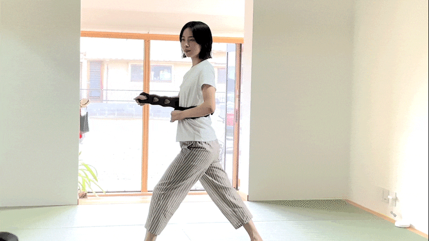 1.バンドを背中に沿わせ、脇を締めます。