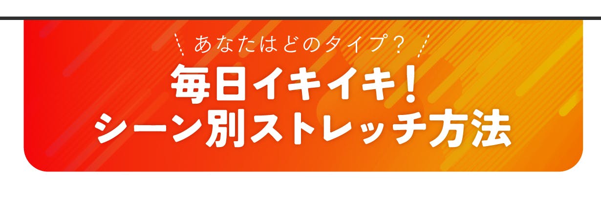 お家やオフィスでも、運動前後やドライブでも、さまざまなシーンでストレッチ!
