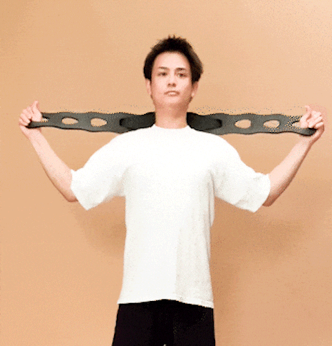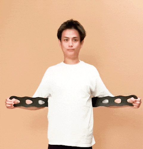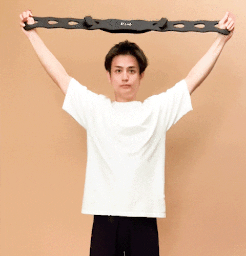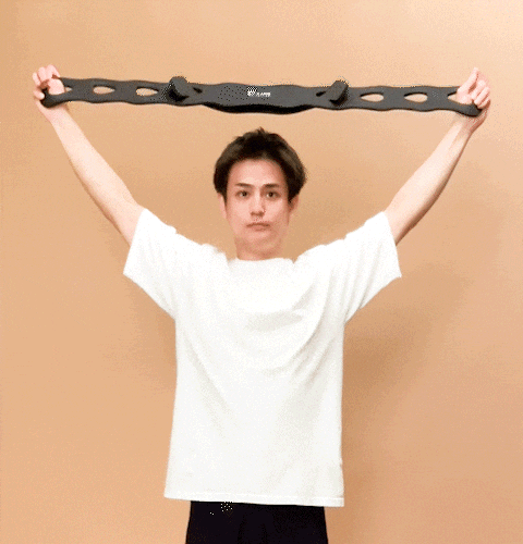 1.頭上で腕を伸ばしバンドを軽く引っ張ります。