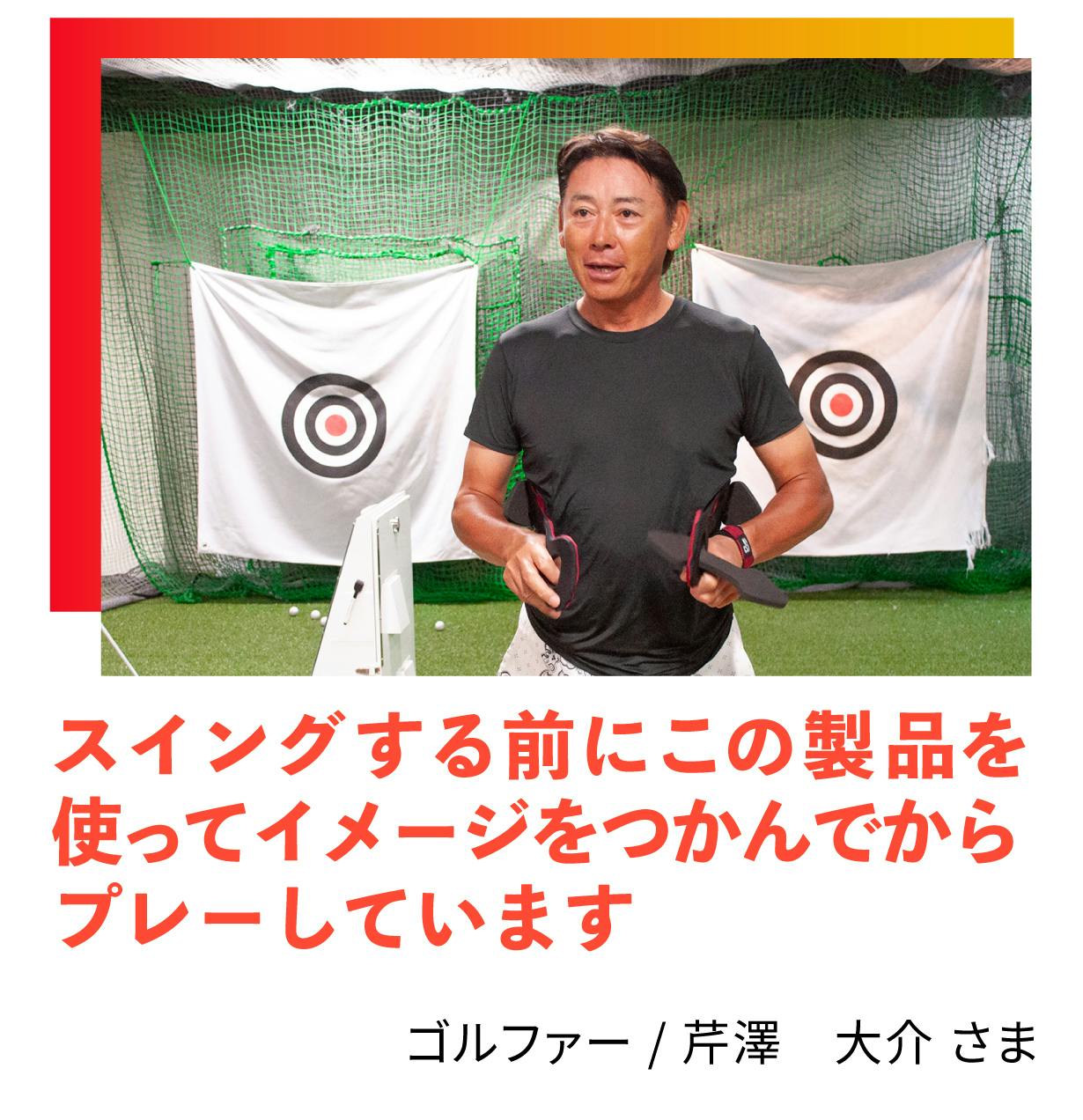 ゴルフスイングでよく「切り返しで間を作れ」と言われますが、動きが硬いと全部がくっついて動くようで、間が取りにくいと感じています。宮澤先生から胸椎、胸郭の動きの大切さを聞き、この製品を試させていただきました。脊椎の支点になるところに当てると動作を鮮明にイメージしやすいので、スイングする前にこの製品を使ってイメージをつかんでからプレーしていますね。