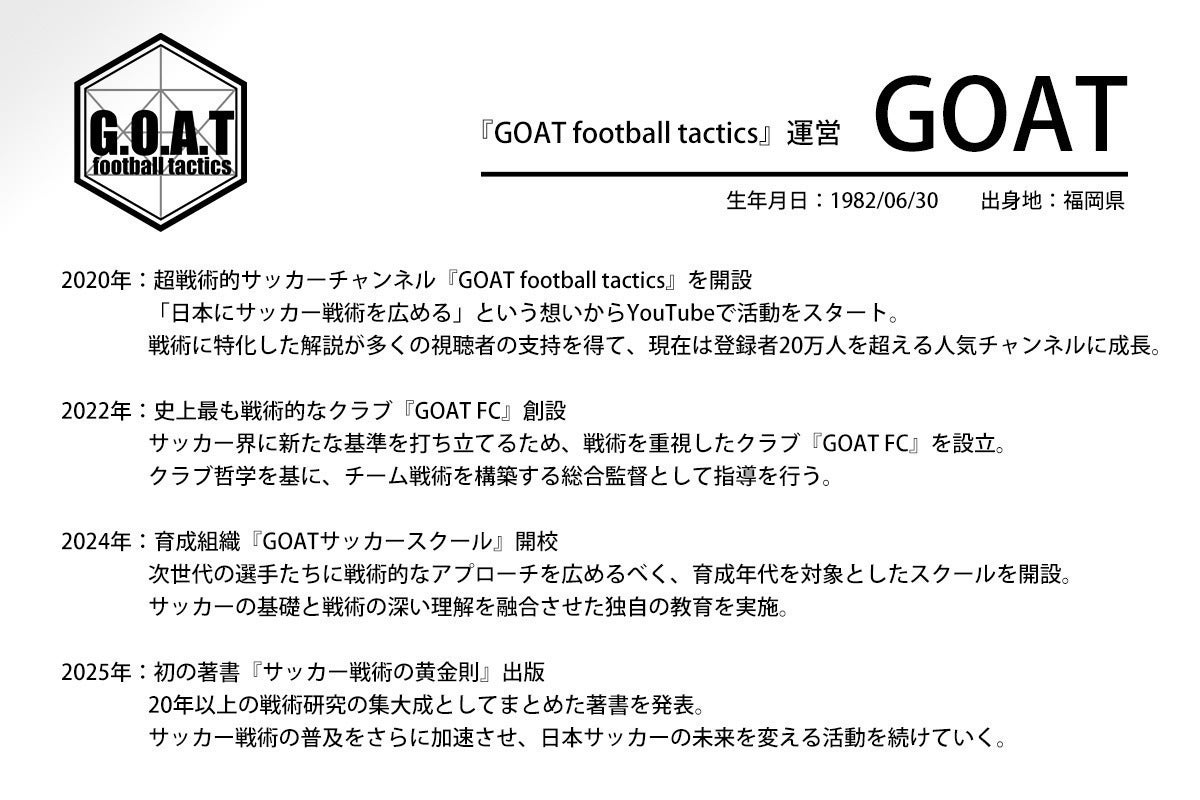 その夢のサッカーを体現する組織が、GOAT戦術を体現するクラブ『GOAT FC』です。