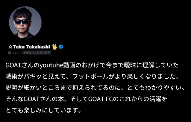 GOATさんの動画に出会ってから、サッカーを見る目がガラリと変わりました。